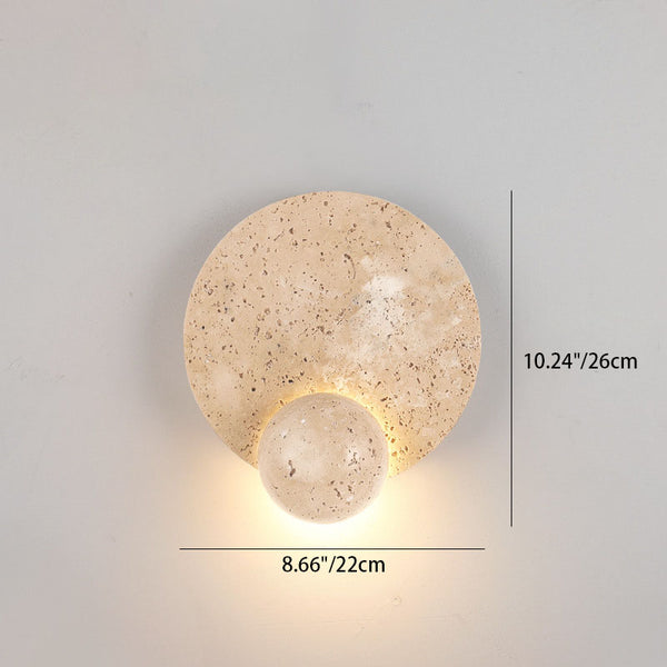 Applique murale LED en travertin rond jaune traditionnel japonais pour chambre