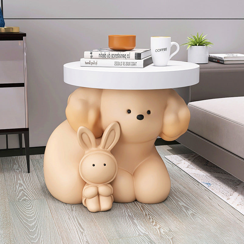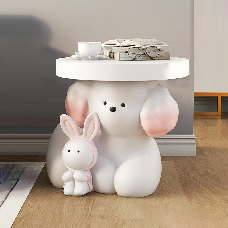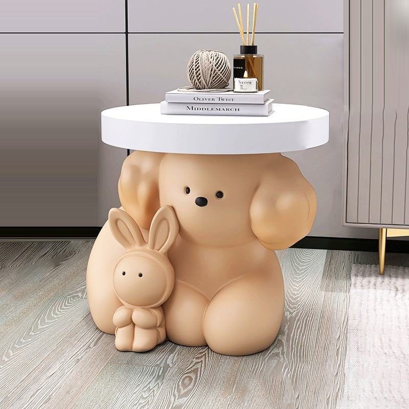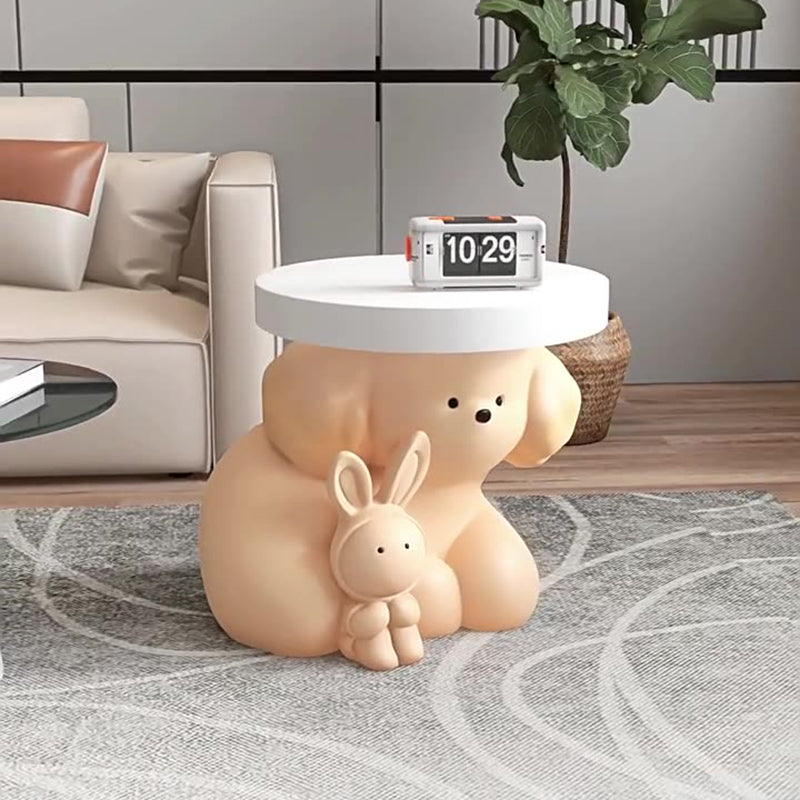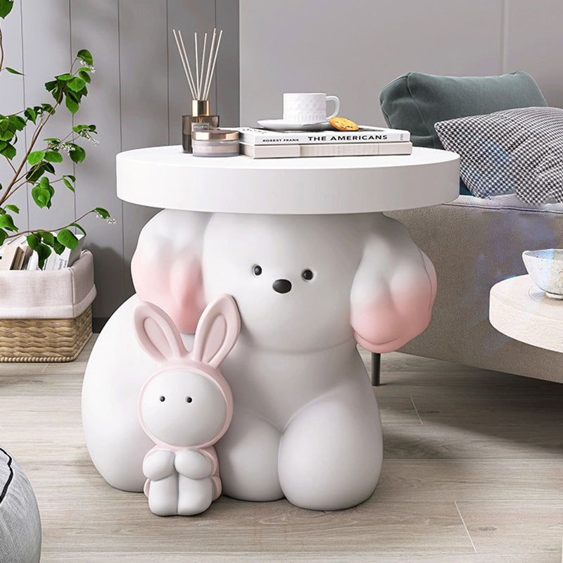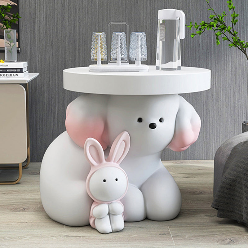 Modern Art Deco Resin Dog & Rabbit-Shaped Round End Table With 1-Tier For Living Room