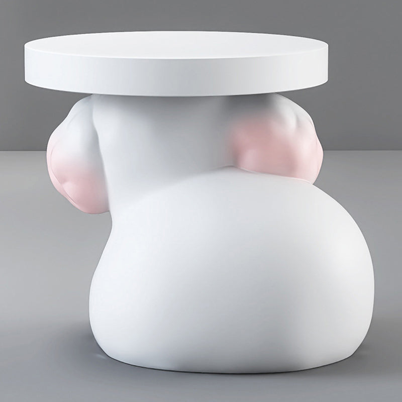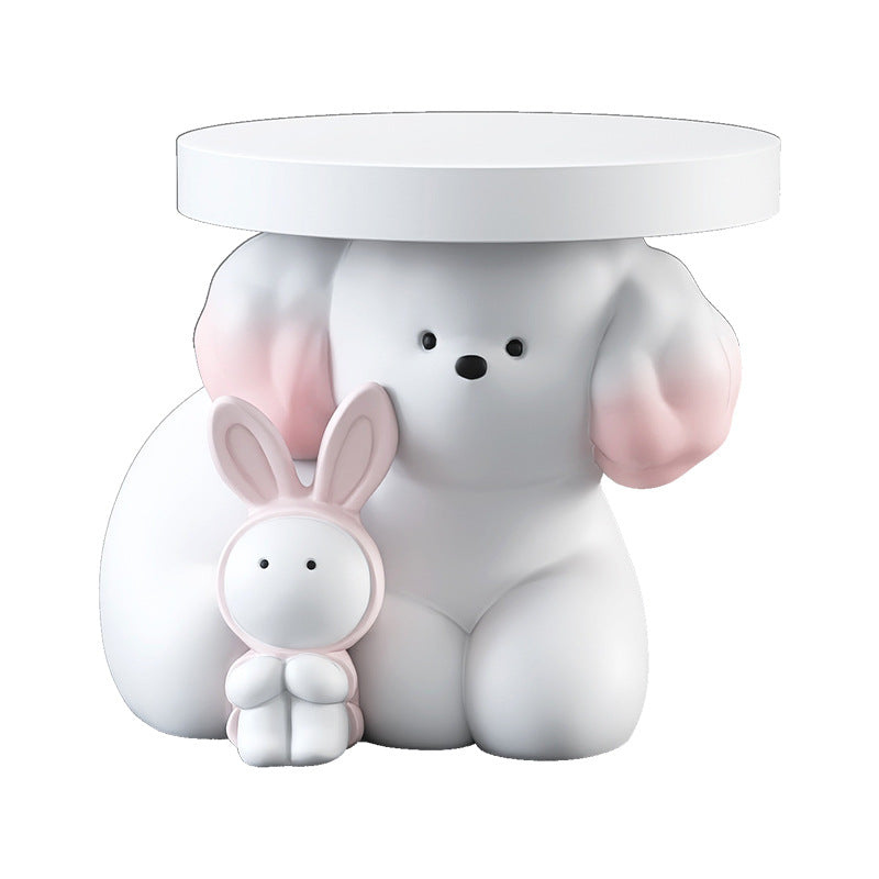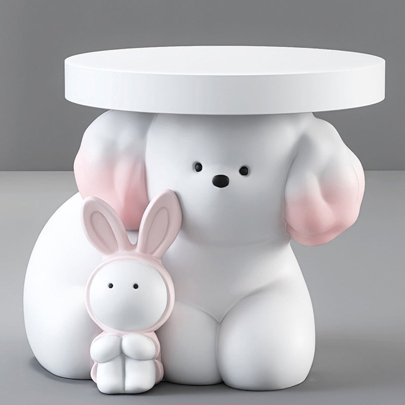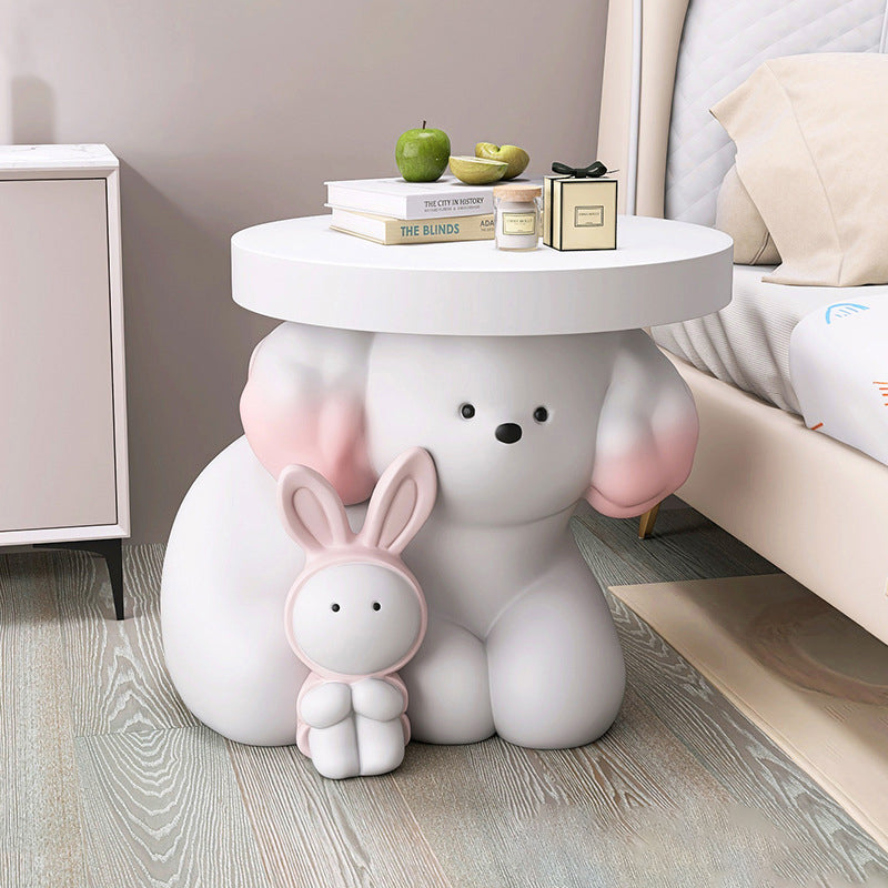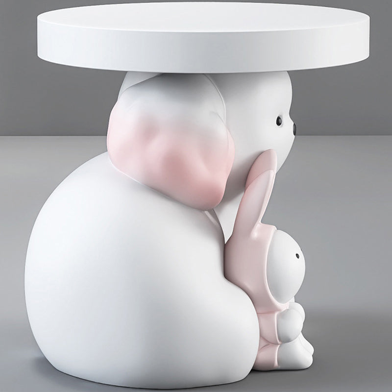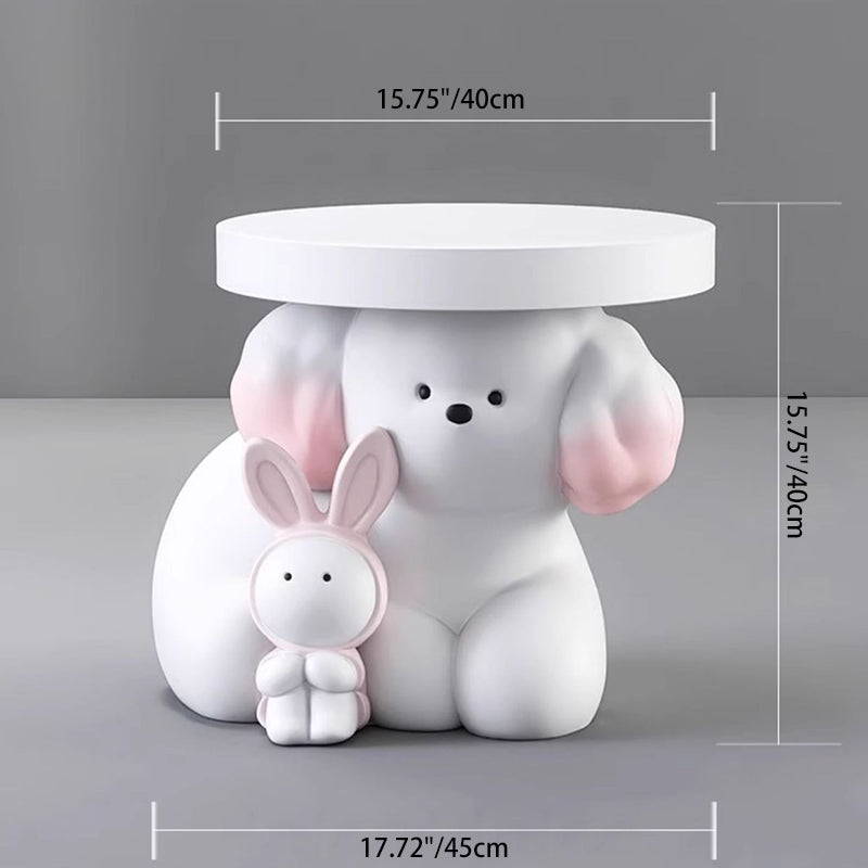 Modern Art Deco Resin Dog & Rabbit-Shaped Round End Table With 1-Tier For Living Room