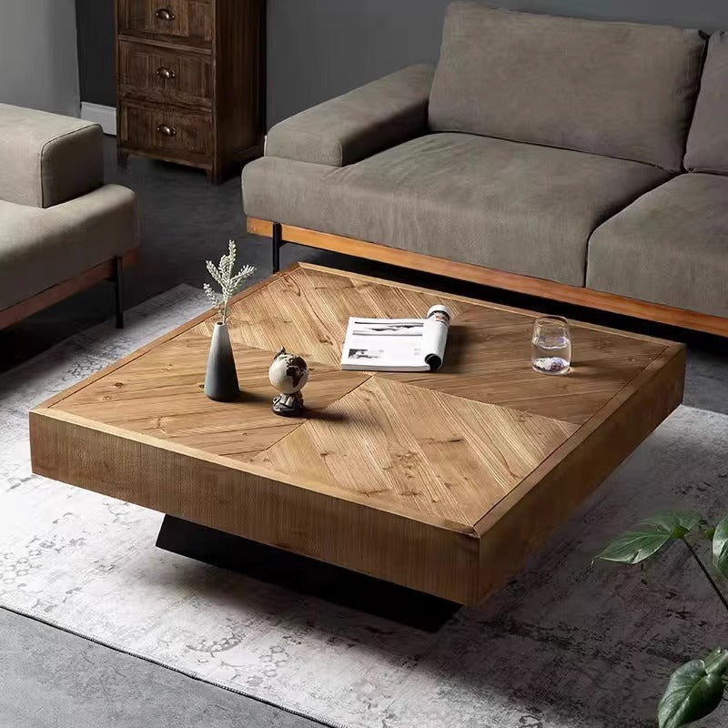Contemporary Retro Square Pine Wood Coffee Table For Living Room