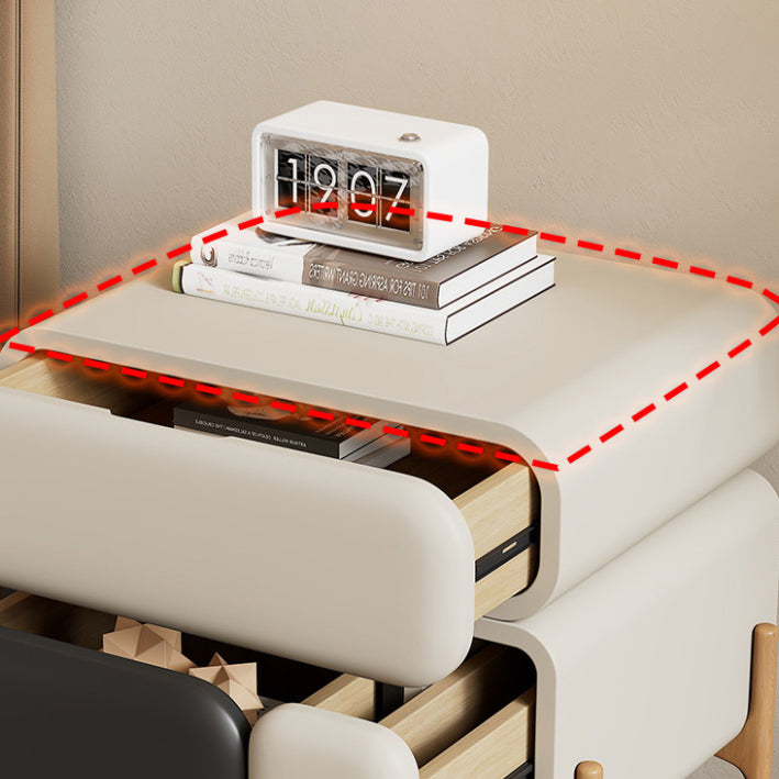 This contemporary Scandinavian nightstand features a solid multi-layer board frame and MDF structure wrapped in delicate, waterproof microfiber leather that resists scratches and daily wear. Designed with three smooth, quiet drawers and elevated legs for easy cleaning, it offers organized storage and rounded, safe edges. Available in Black, Off White, Off-Grey, Dark Grey, Light Grey, Khaki, Orange, Light Green, and Brown, it enhances both bedroom and living room spaces with modern style and functionality.