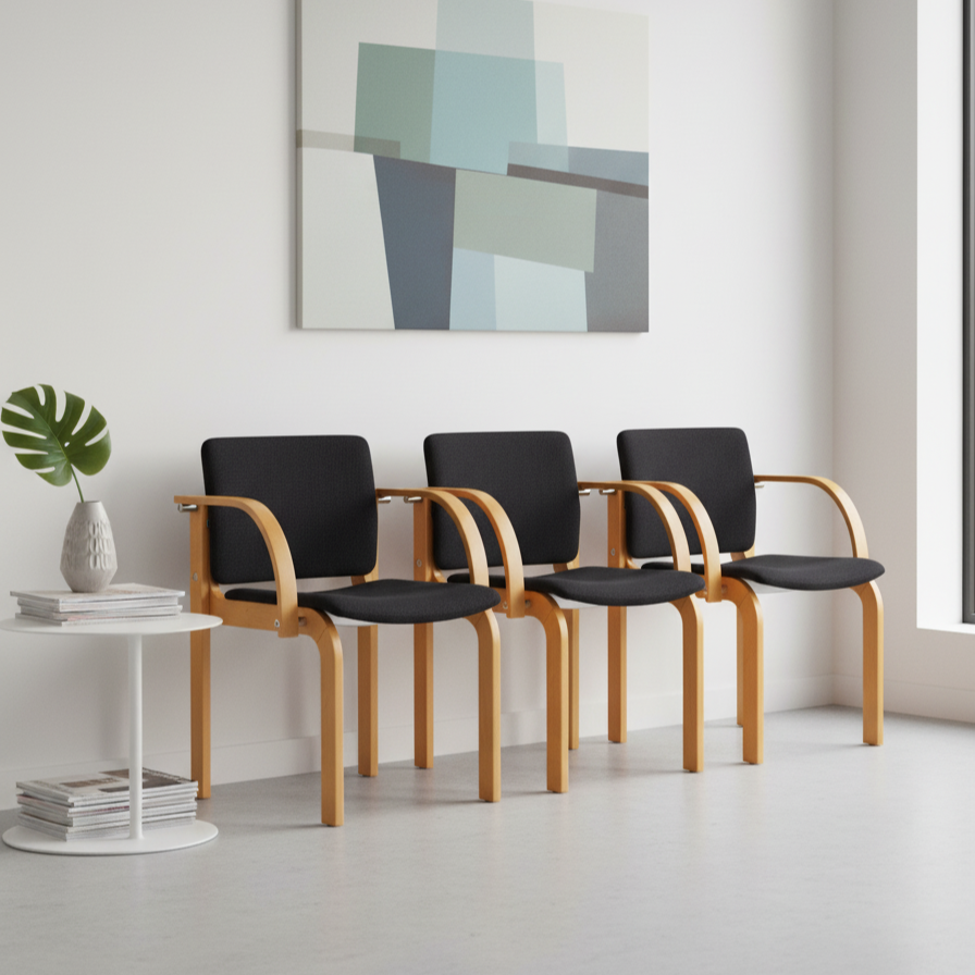Elevate your dining or living space with this stylish Nordic-inspired dining chair, a piece that beautifully balances modern design with vintage warmth. The chair is built for enduring stability and comfort, featuring a strong frame that combines solid 201 stainless steel with genuine solid beech wood legs. The shell showcases a beautiful beech wood veneer, which wraps into a supportive, curved backrest with integrated arm support.
