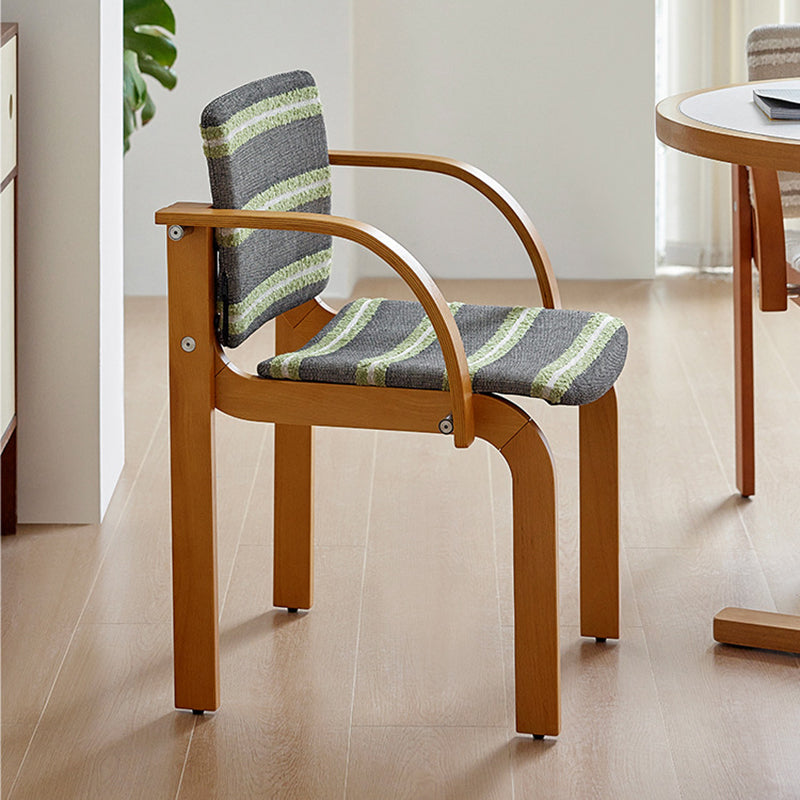 Contemporary Scandinavian Square Stainless Steel Beech Wood Multi-Layer Solid Wood Panel Backrest Armrest Dining Chair For Dining Room