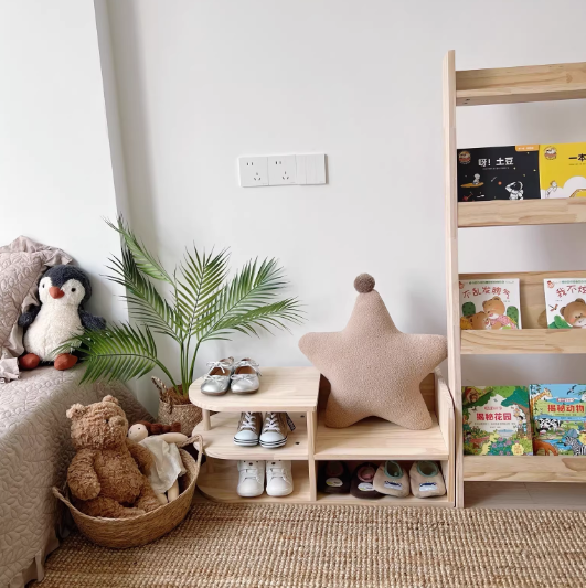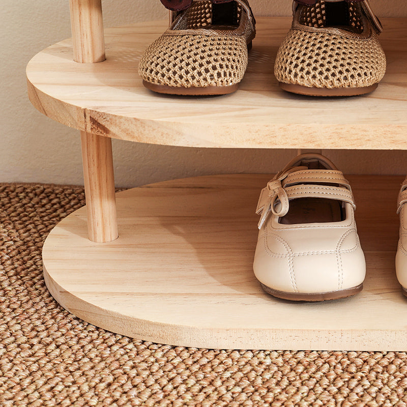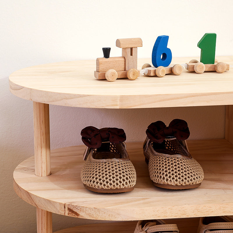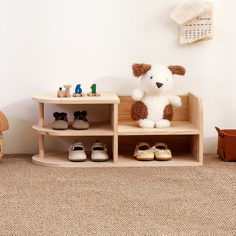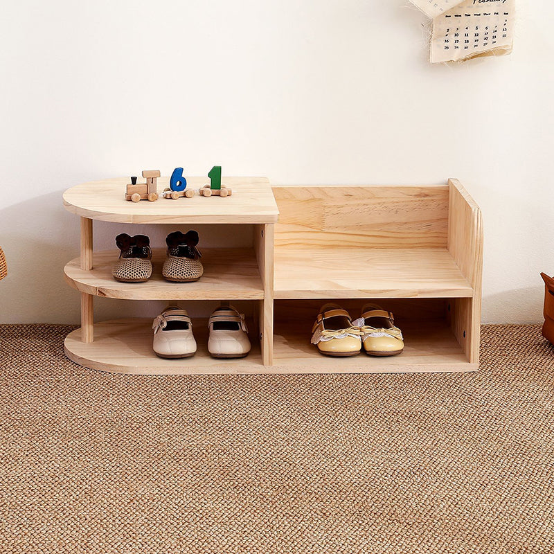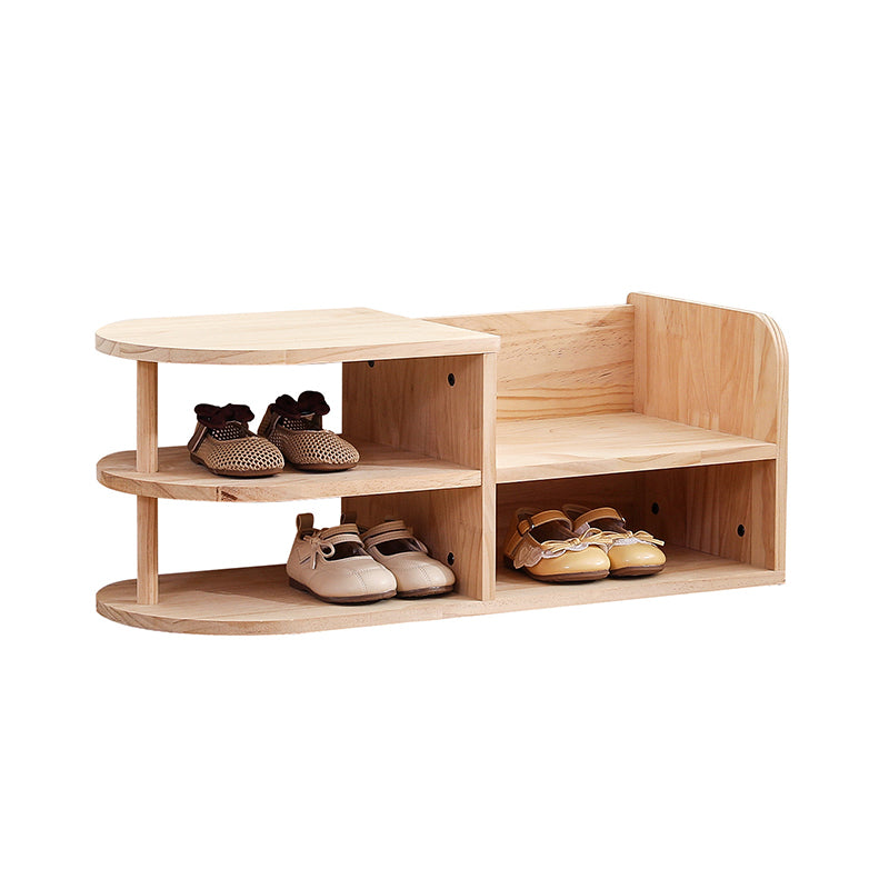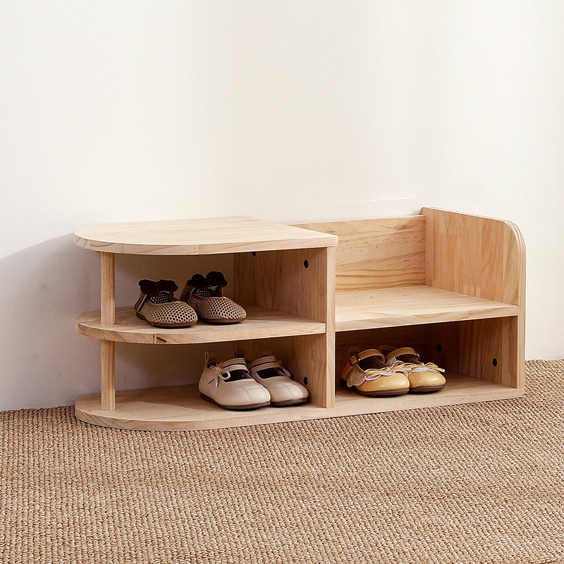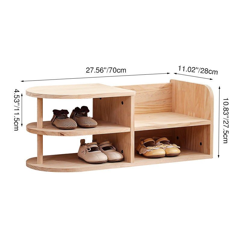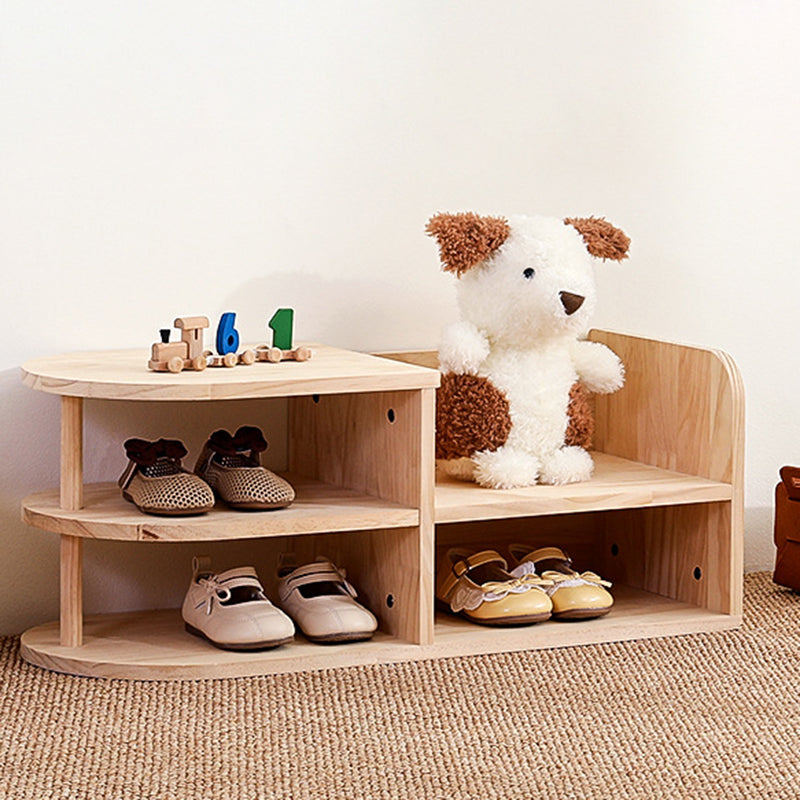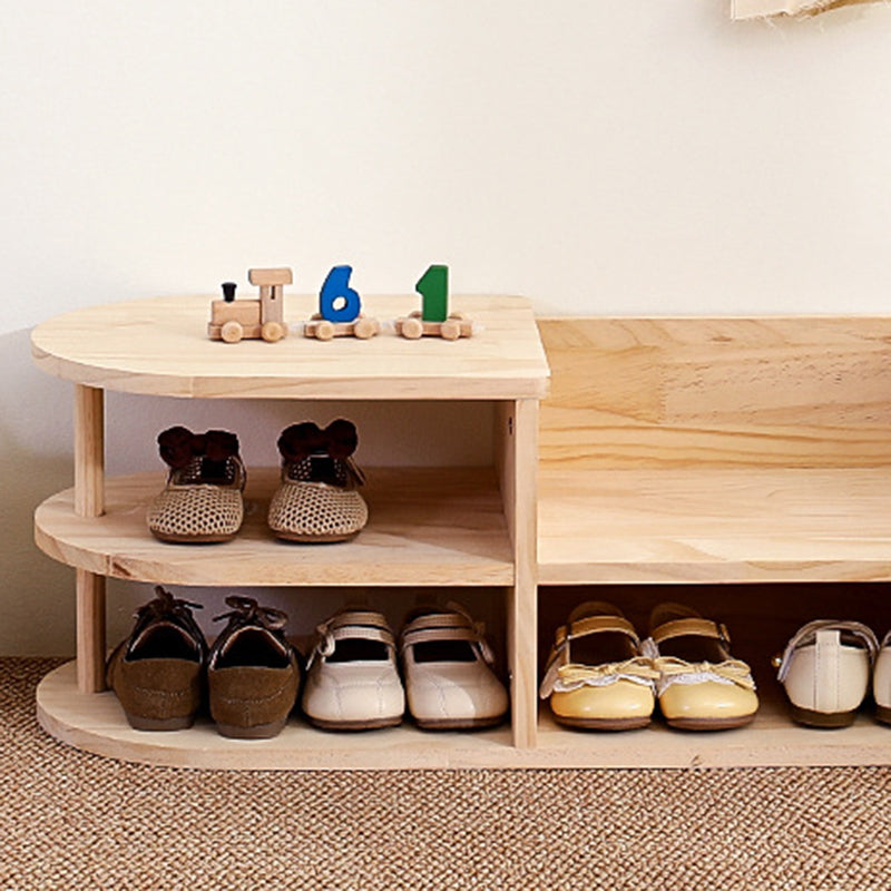 Designed for everyday convenience, this solid wood shoe bench features a curved square silhouette with two-tier storage, offering a comfortable seat and organized space for kids shoes. The natural wood finish, high-strength construction, and rounded safety corners make it durable and child-friendly.