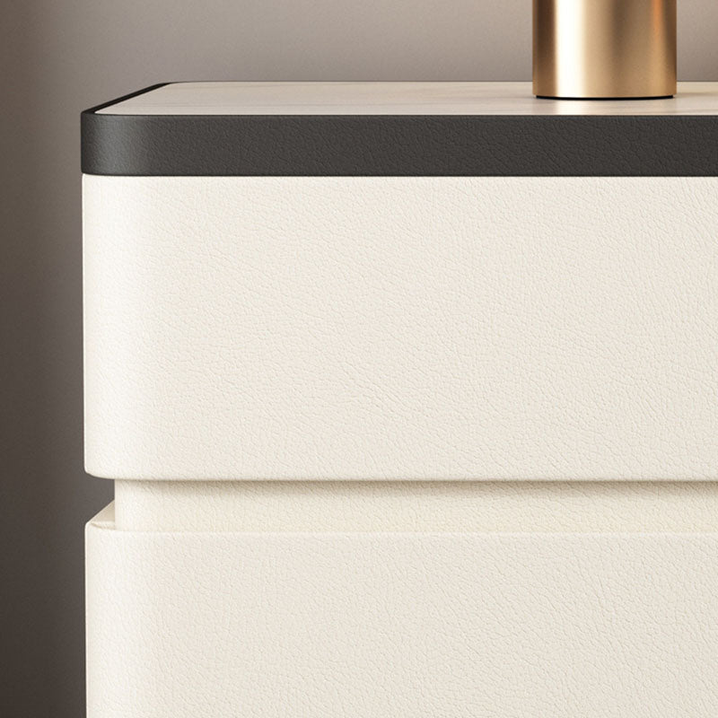 Modern Minimalist Rectangular Stone Slab Solid Wood Cat's Paw Leather Nightstand 2- Drawer For Bedroom
