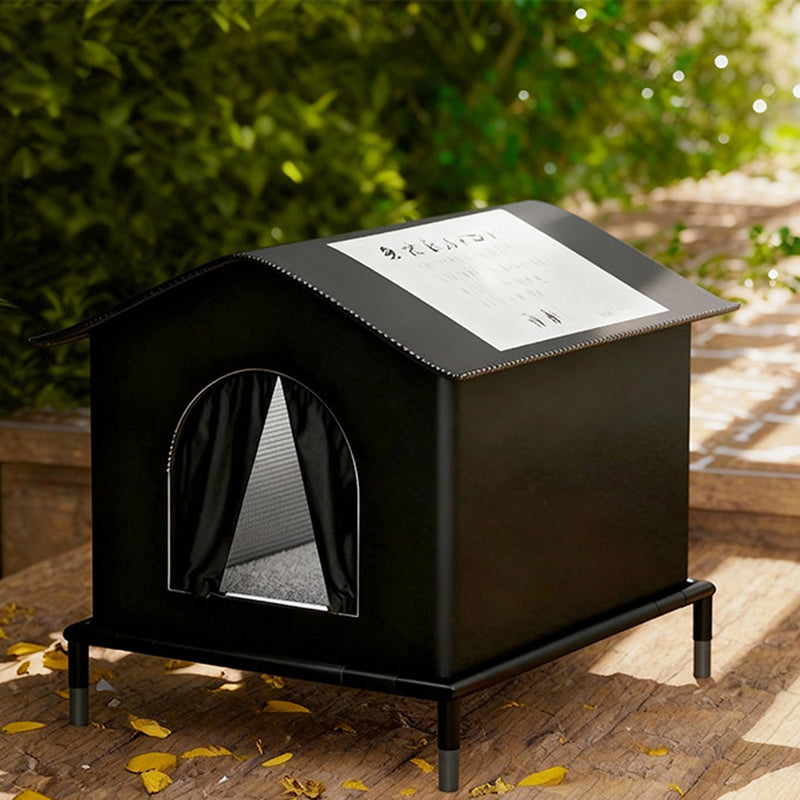 Built as a warm outdoor pet shelter for cats and small dogs, the heat-absorbing black exterior and insulated interior create a cozy environment while maintaining durability for all-season use. Perfect for garden, patio, porch, or indoor pet resting areas.