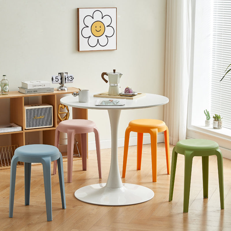 Elevate your home with this modern minimalist dining chair, featuring a clean cylindrical design and a backless, armless profile. This streamlined silhouette is ideal for flexible seating and easy storage, making it a perfect fit for any contemporary space. Crafted from durable LHFPP material, the chair offers a strong weight capacity, anti-slip stability, and rounded edges for safety. Its space-saving stackable design allows you to maximize your floor plan, while a vast palette—including black, white, pink, orange, green, sky blue, red, gray, brown, and dark blue—ensures a perfect match for kitchens and dining areas.