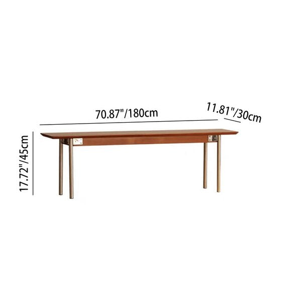 Modern Minimalist Pine & Stainless Steel Rectangular Bench Backless For Dining Room