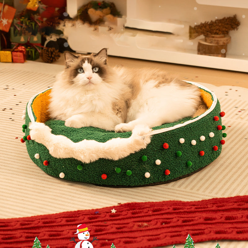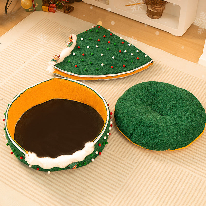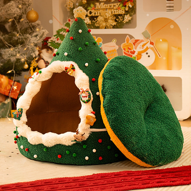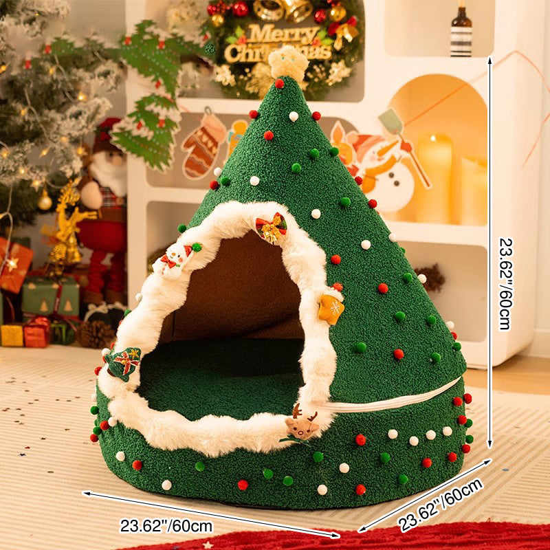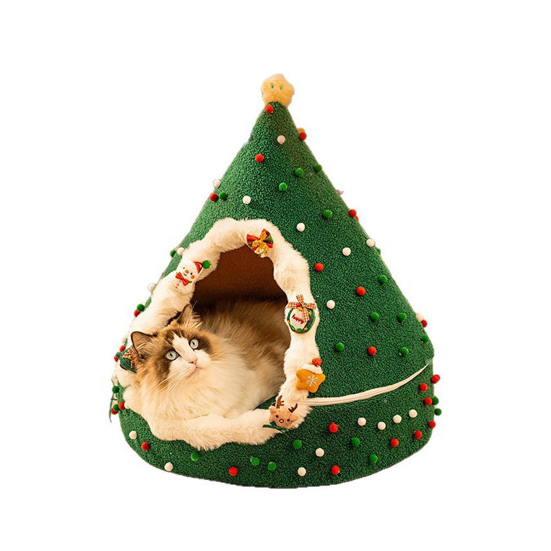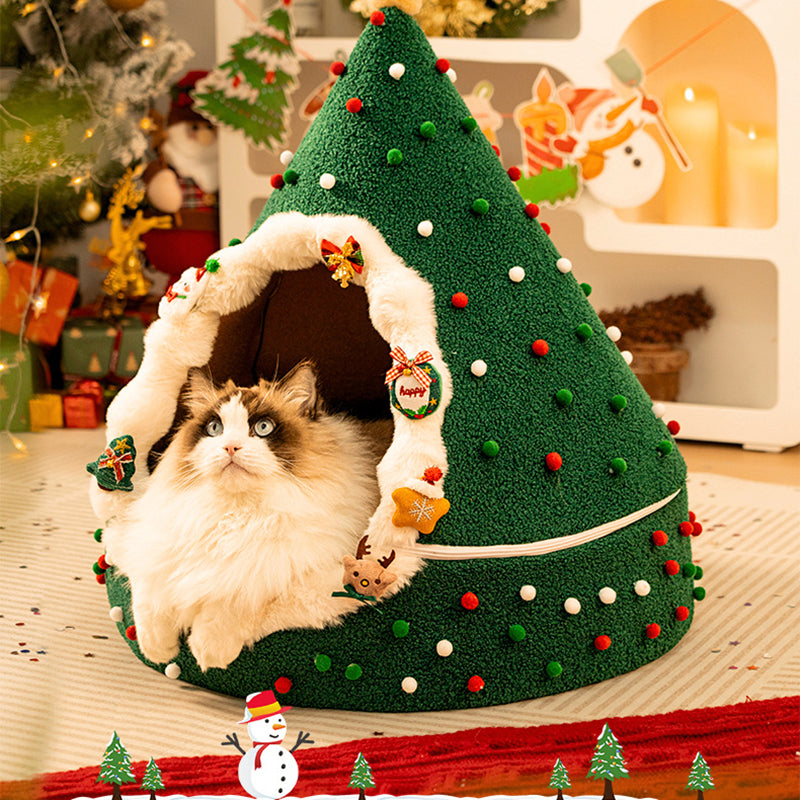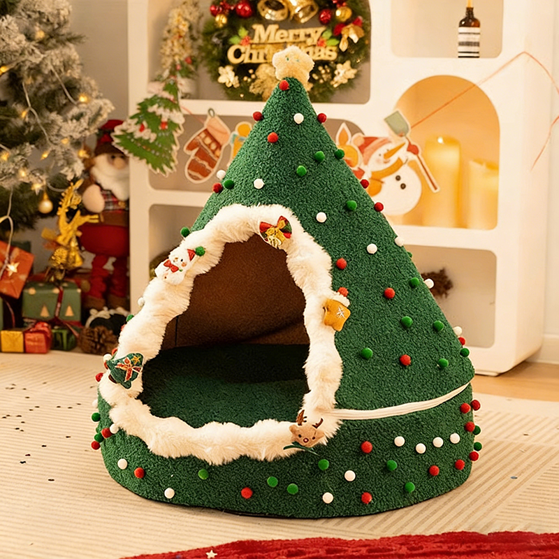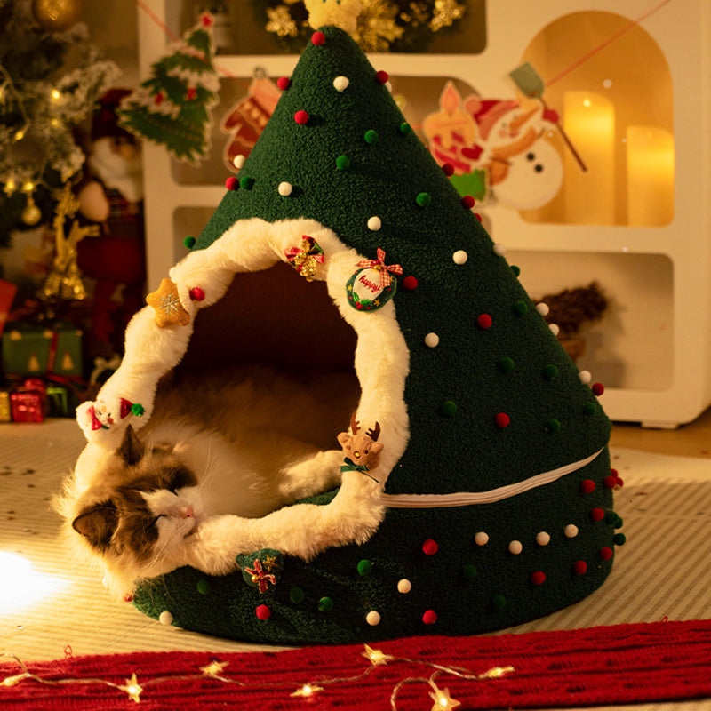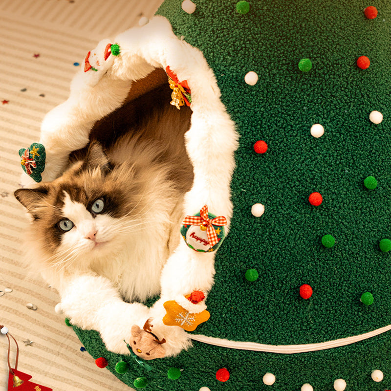 Bring the magic of the holidays to your pet’s naptime with this Christmas tree–inspired cat bed. Designed with a whimsical conical shape and a festive palette of evergreen, crimson, and snowy white, this bed serves as both a "charming seasonal accent" and a high-performance pet sanctuary. The enclosed teepee structure taps into a cat’s natural instinct to seek out private, secure spaces, offering a "peaceful retreat" that reduces anxiety and provides a secluded spot for deep, restorative sleep in your living room or bedroom.