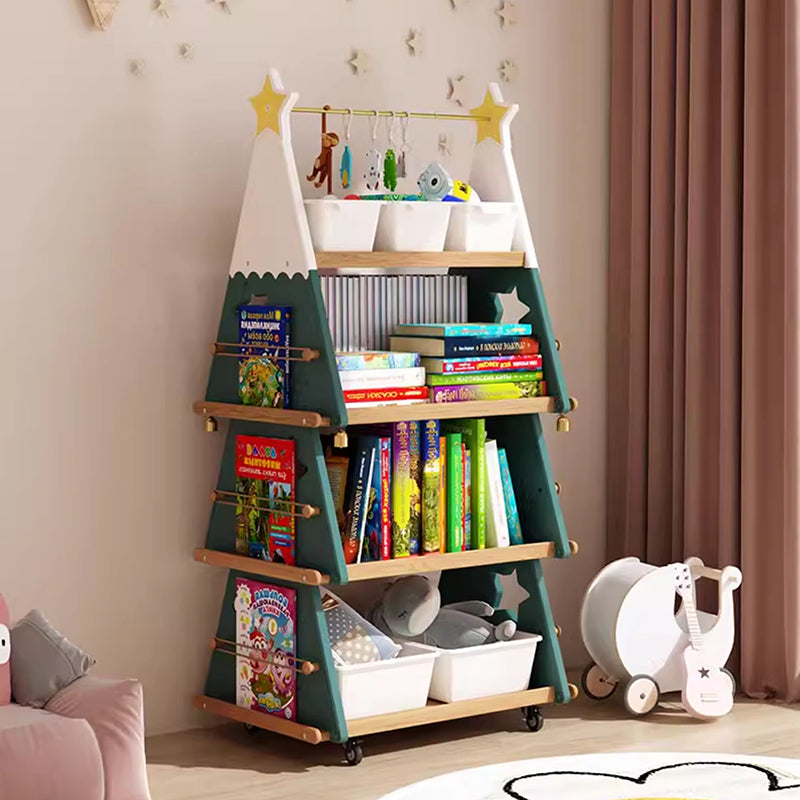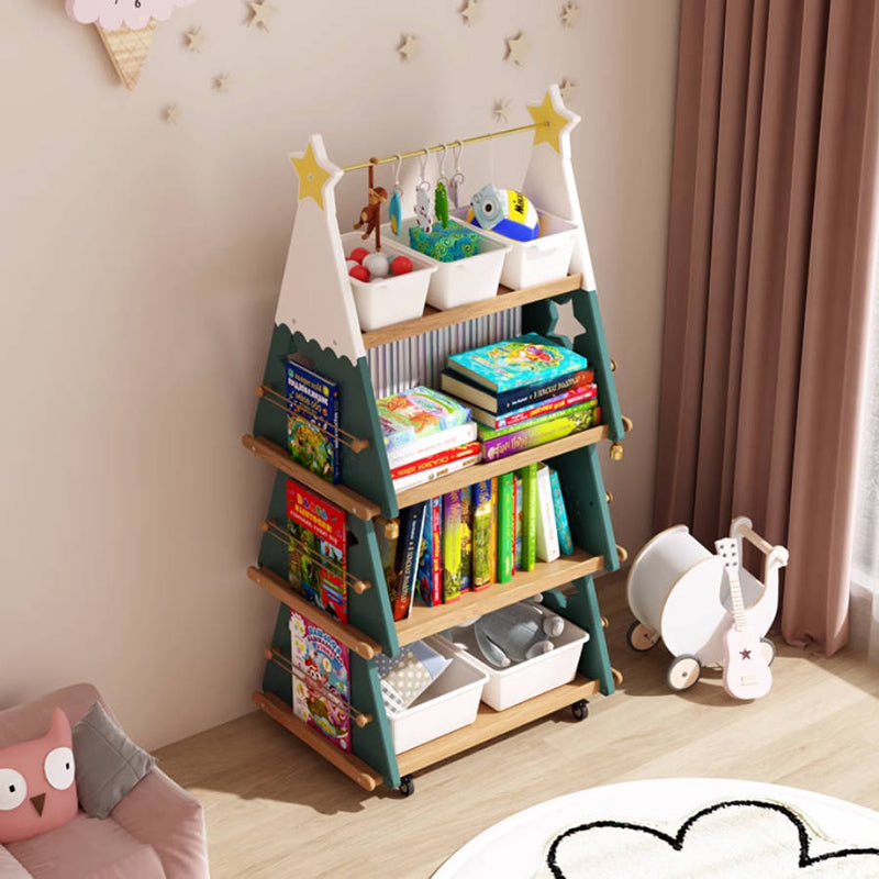 Functionality is maximized with 4 tiers of large-capacity, categorized storage, making organization simple and effective. A key feature is the inclusion of smooth-rolling casters, allowing the bookshelf to be effortlessly moved between rooms, creating a practical and portable storage solution. Available in cheerful Green, delightful Pink, and serene Sky Blue, this playful shelf is ideal for bedrooms, study rooms, or living rooms. Optimized for North American consumers searching for creative kids bookshelves, red oak and ABS storage, Christmas tree shaped organizers, and portable storage with casters for children's rooms.