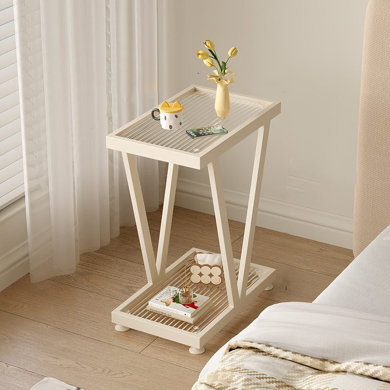 This contemporary industrial side table features a slim rectangular design crafted with a corrosion-resistant carbon steel frame and fluted glass shelving. Available in premium black and cream white, its 2-tier structure offers compact yet practical storage, making it ideal for bedside use or next to a sofa in modern living rooms or bedrooms.