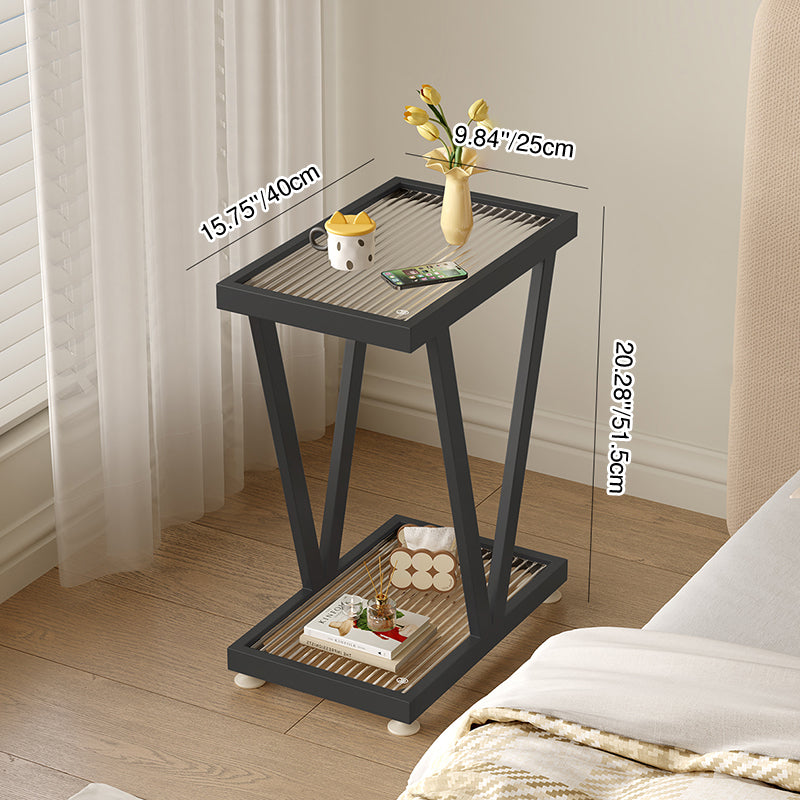 Contemporary Industrial Slim Rectangular Carbon Steel Glass End Table 2-Tier Design For Living Room