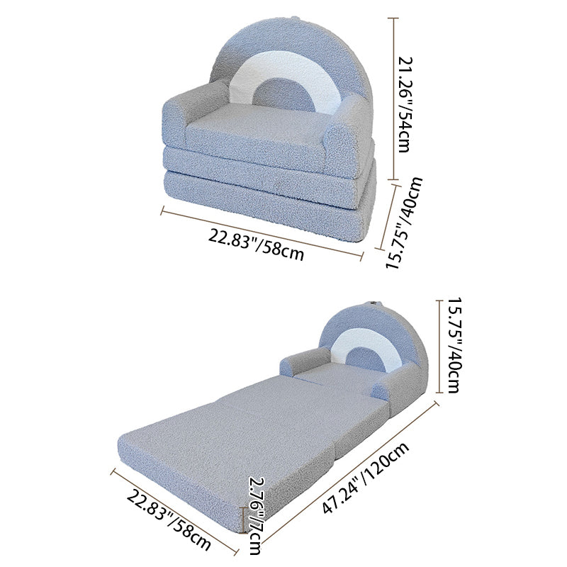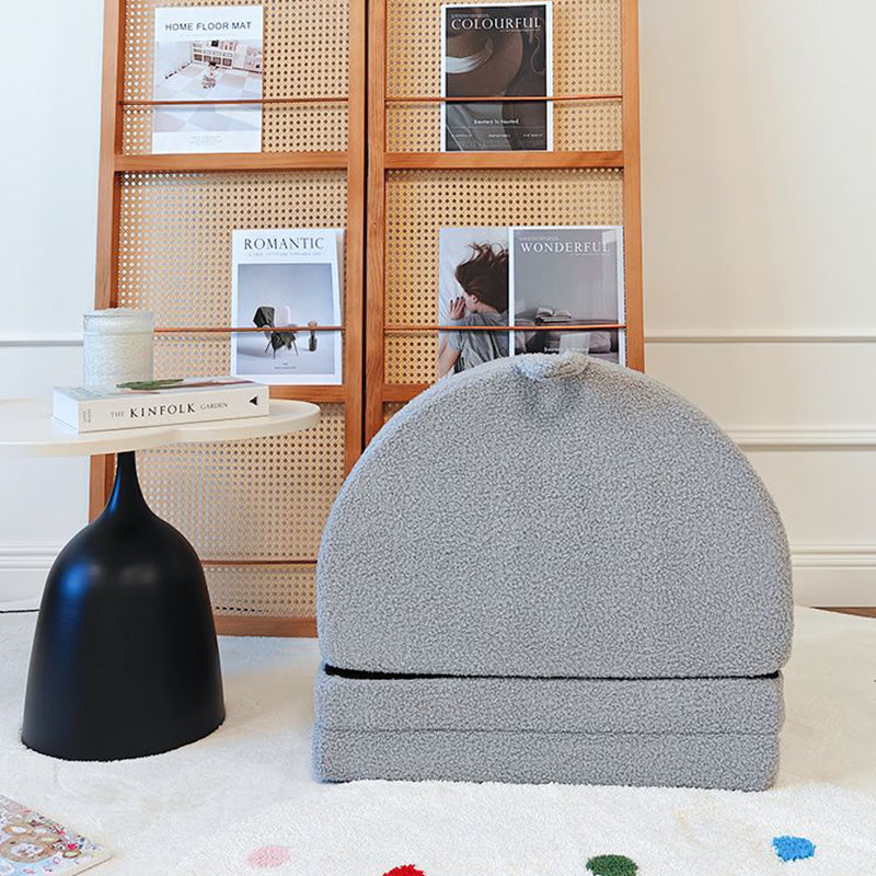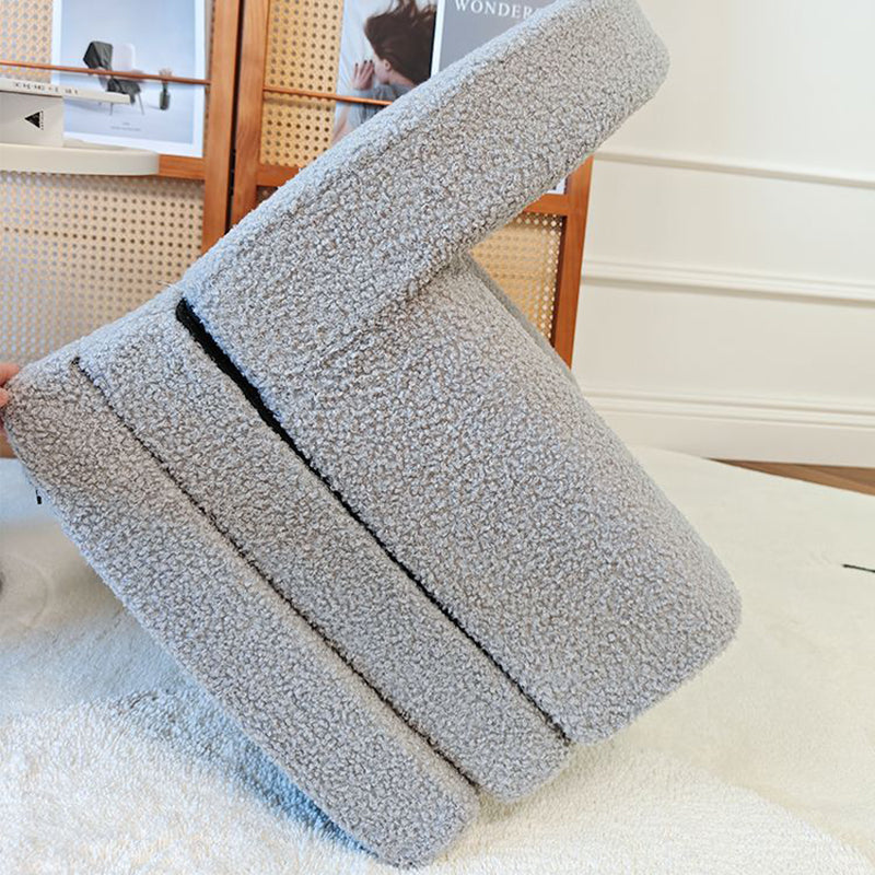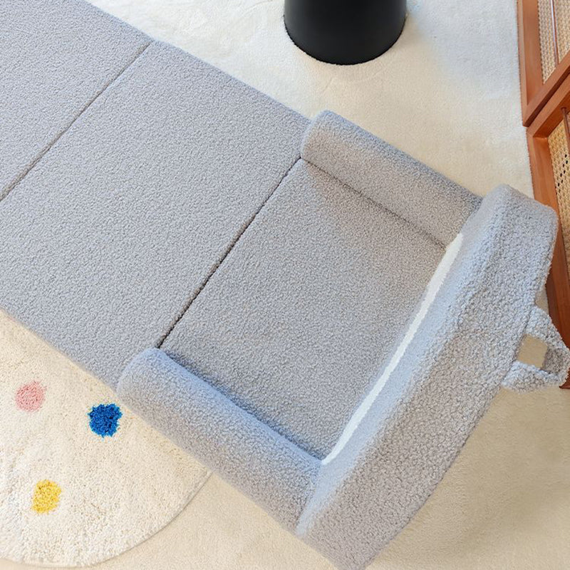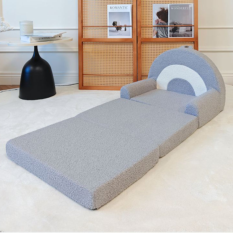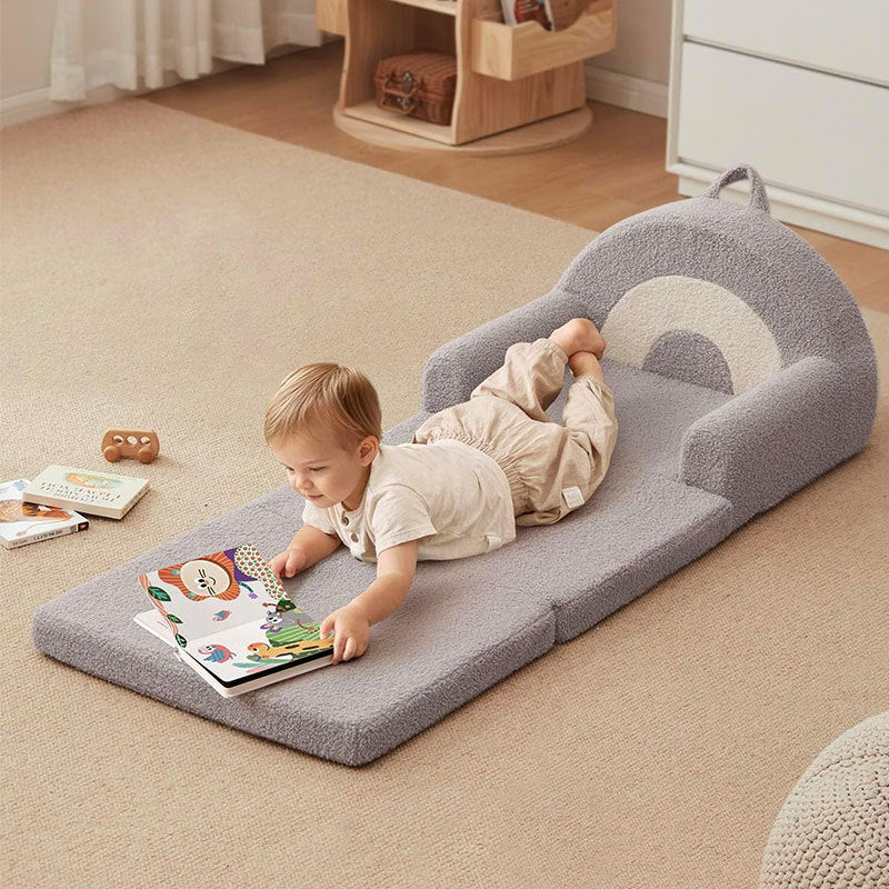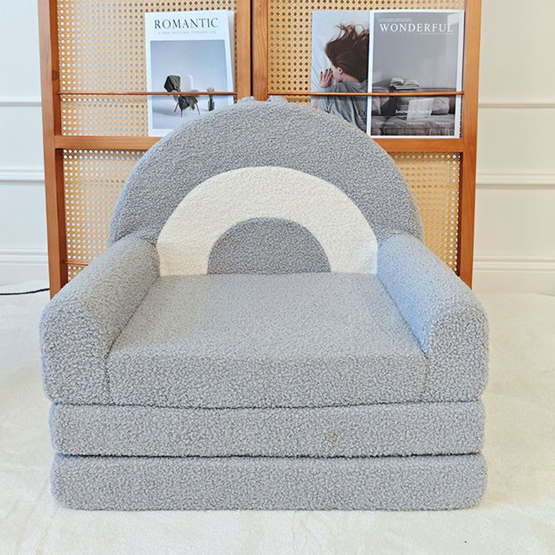 Create a cozy sanctuary for your little one with this contemporary creative kids sofa chair. Wrapped in ultra-soft teddy plush and cushioned with high-resilience foam, it features a curved design that provides a supportive backrest and armrests for safe, comfortable lounging. The three-sided wraparound seat offers a secure, hug-like feel, while the rounded, child-safe edges provide total peace of mind. Finished in a neutral gray tone, this lightweight foldable structure is easy to move, making it an ideal addition to living rooms, play areas, and cozy reading corners.
