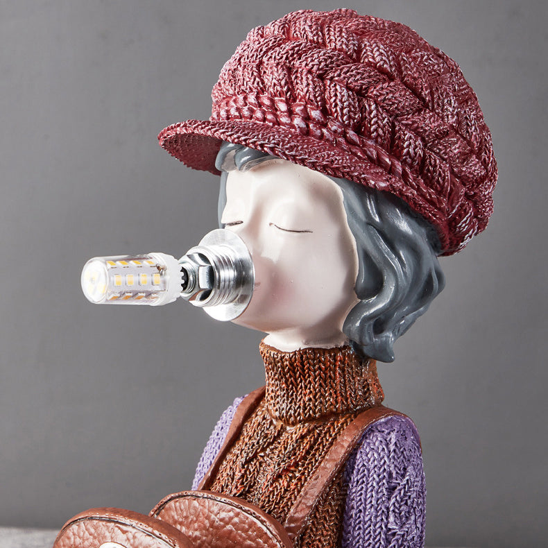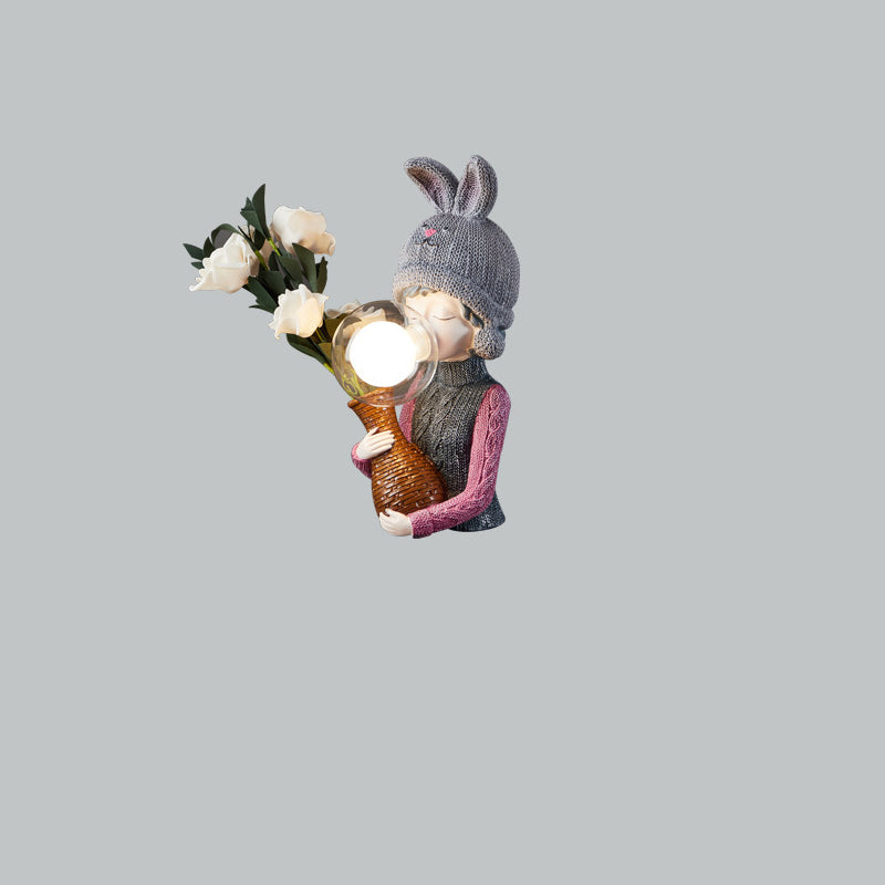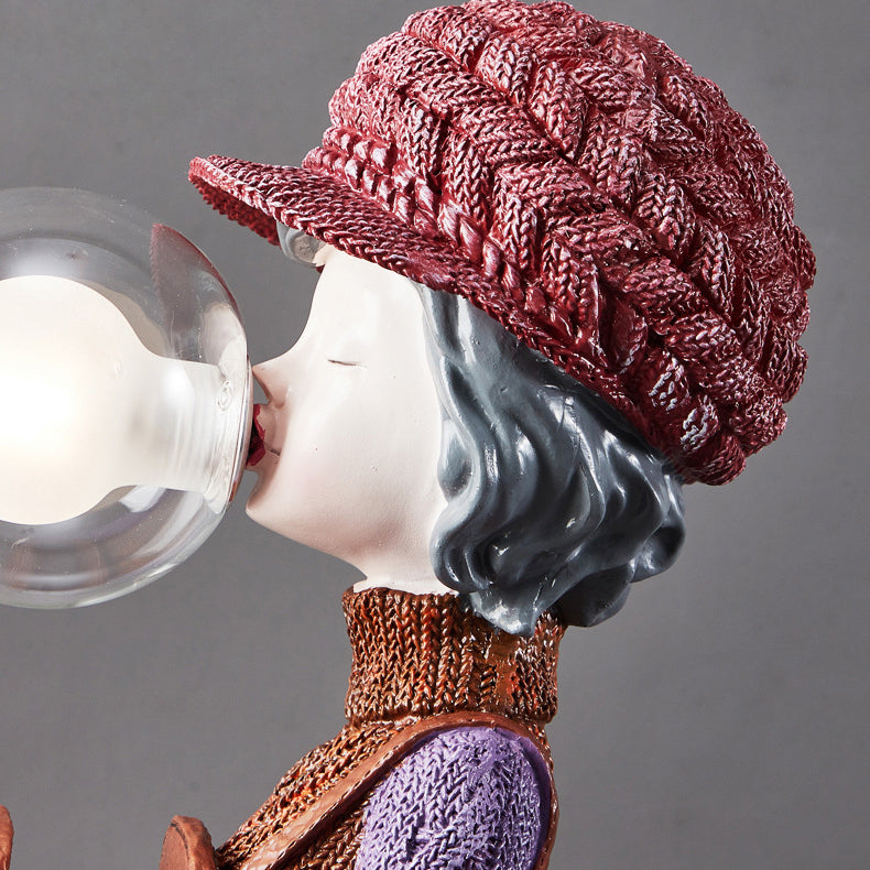 Lampe de table 1 lumière pour chambre à coucher avec sac à dos vase à bulles en résine et verre pour fille créative contemporaine