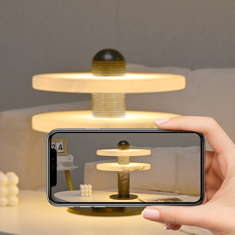 Lampe de table LED contemporaine créative ronde en marbre métal acrylique pour chambre