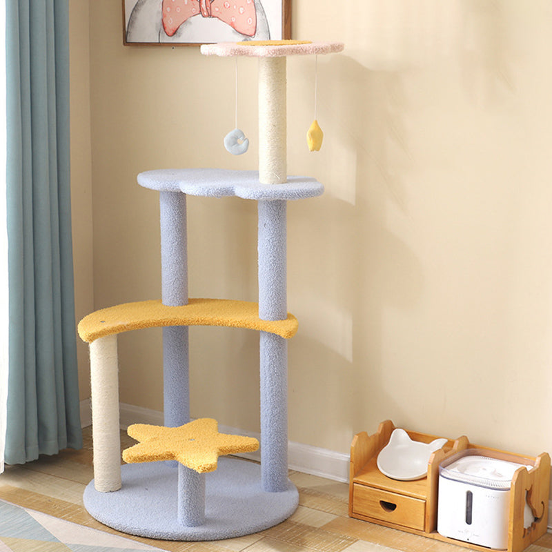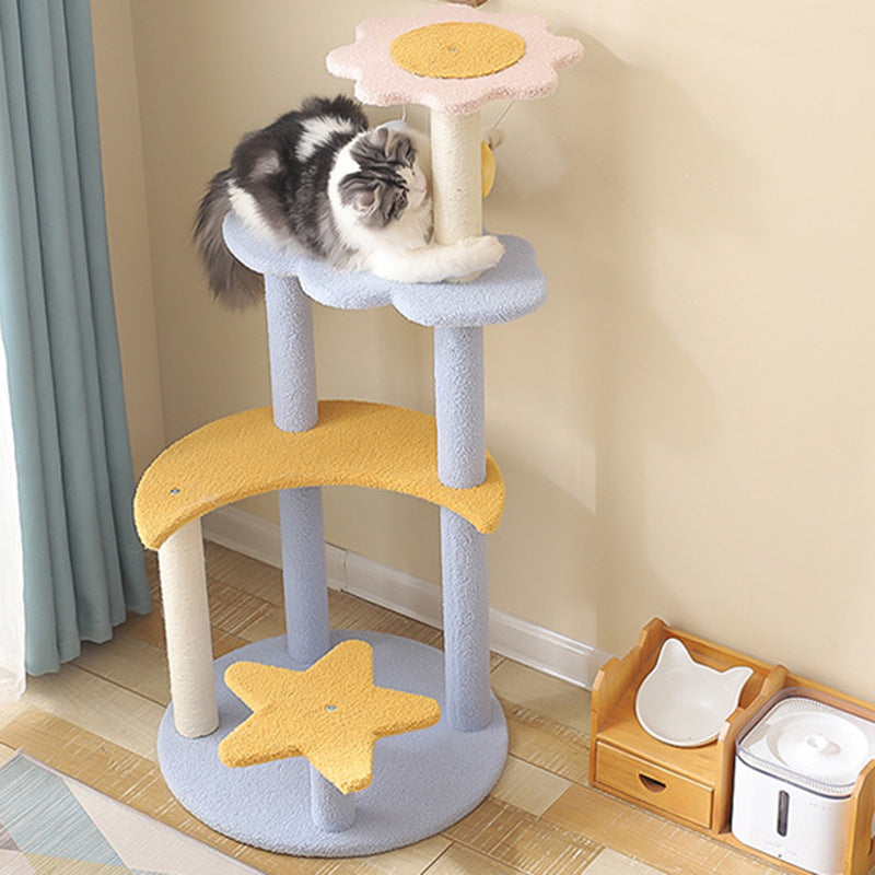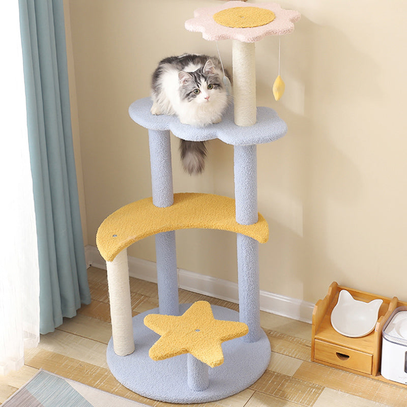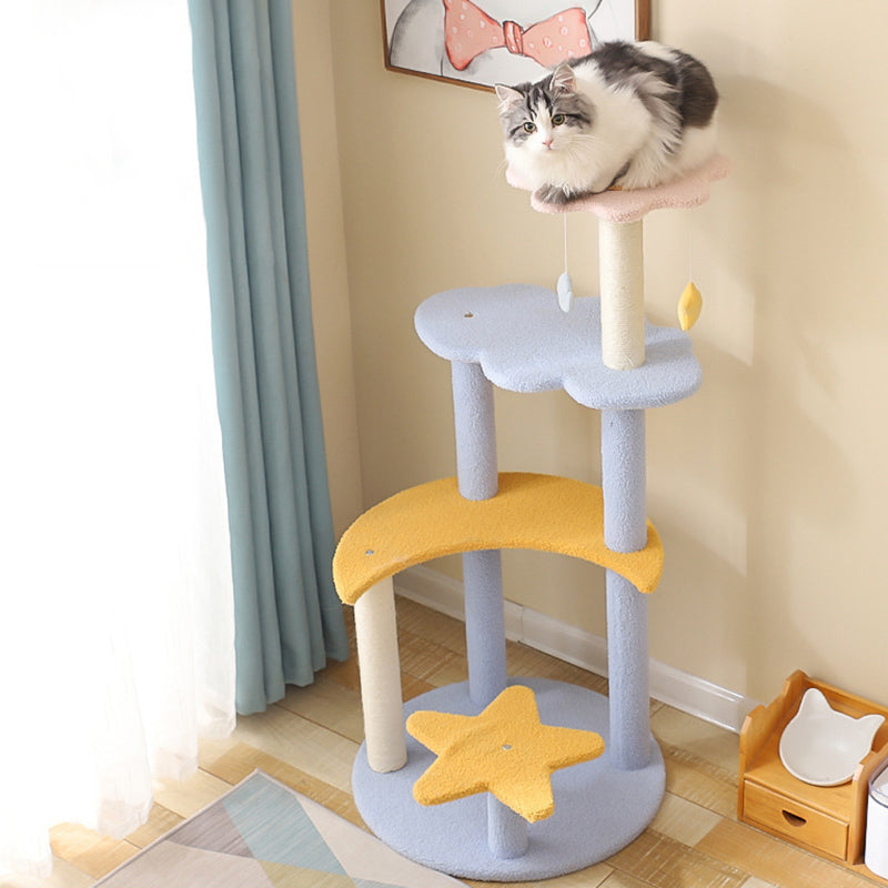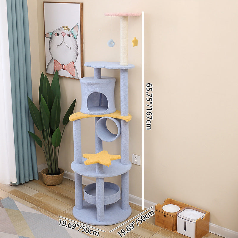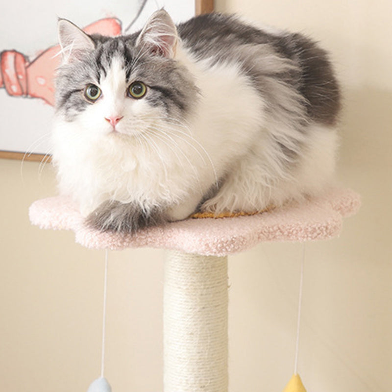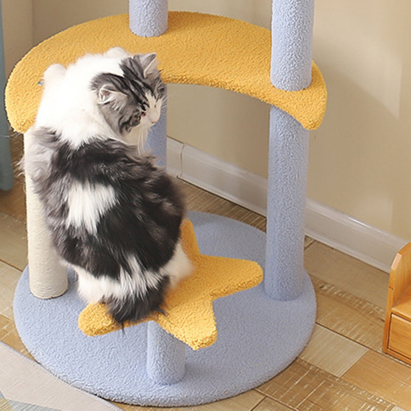 The contemporary cylindrical cat tree is a masterclass in space-saving design, merging a durable sisal rope scratching post with a cozy plush-lined cat condo. Supported by a stable MDF base, this unit offers a thickened post for enhanced strength and wear resistance, ensuring it remains a staple in your home for years. Designed to support cats of all sizes, it fosters healthy scratching and playful climbing. Available in soft pink, yellow, and blue, it serves as a stylish and functional centerpiece for living rooms and bedrooms.