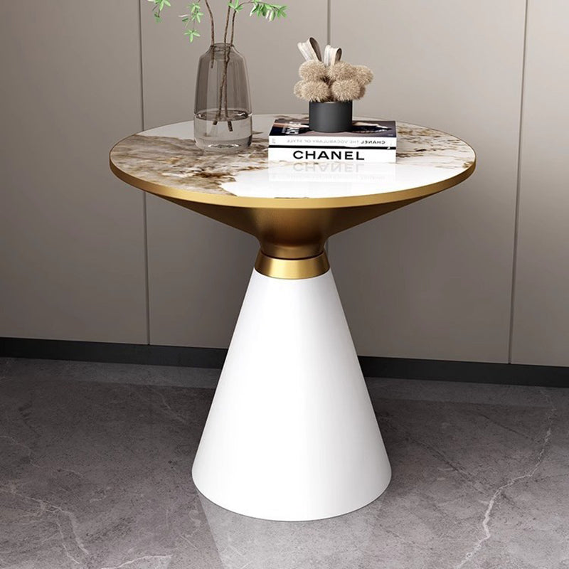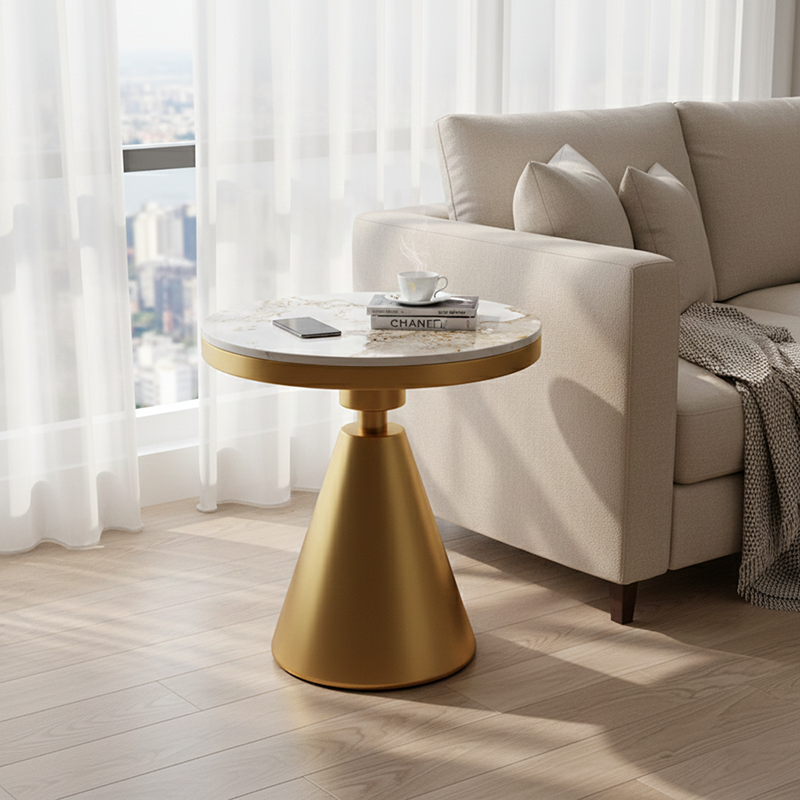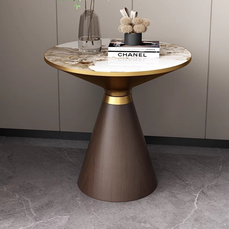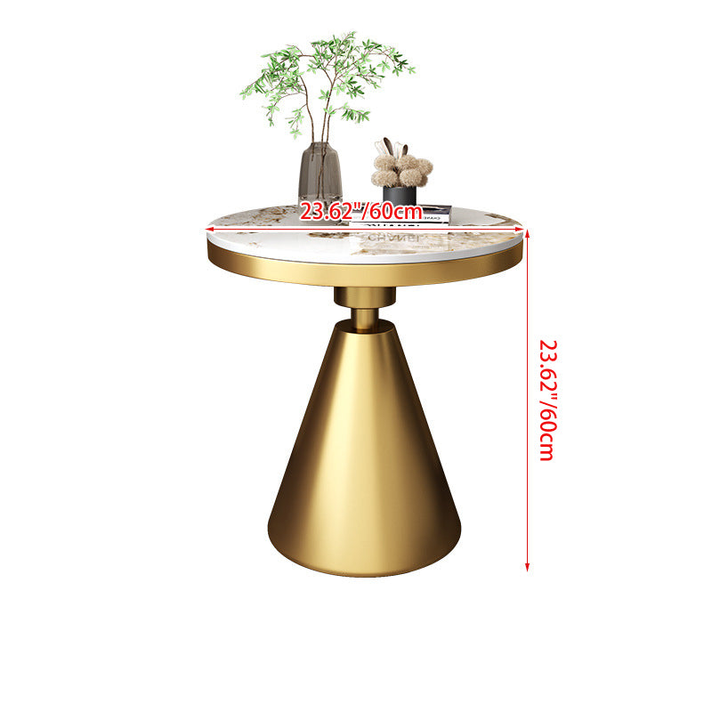 Redefine your interior with this contemporary luxury side table, featuring a refined conical silhouette that exudes modern elegance. The combination of a durable sintered stone top and a robust carbon steel base ensures strong load-bearing performance and excellent heat resistance. With its smooth rounded edges and stable structure, this piece serves as a sophisticated accent for modern living rooms, upscale sofas, or professional hotel lounge settings. Available in a curated palette of brown, white, black, and gold.