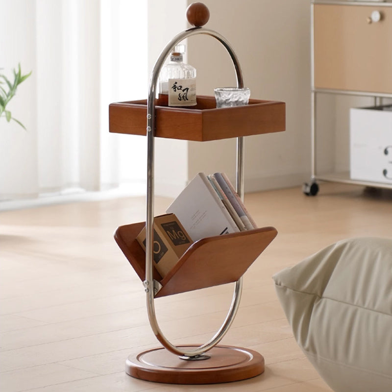 Elevate your home with this Nordic contemporary side table, meticulously crafted from solid wood and accented with sleek stainless steel. Its elegant oval silhouette features a practical two-tier storage design, providing a sophisticated way to organize daily essentials. Available in a bold black or warm cherry wood finish, this piece combines durable construction with a compact footprint. With its strong weight support and timeless appeal, it serves as the perfect functional accent for modern living rooms or curated small-space interiors.