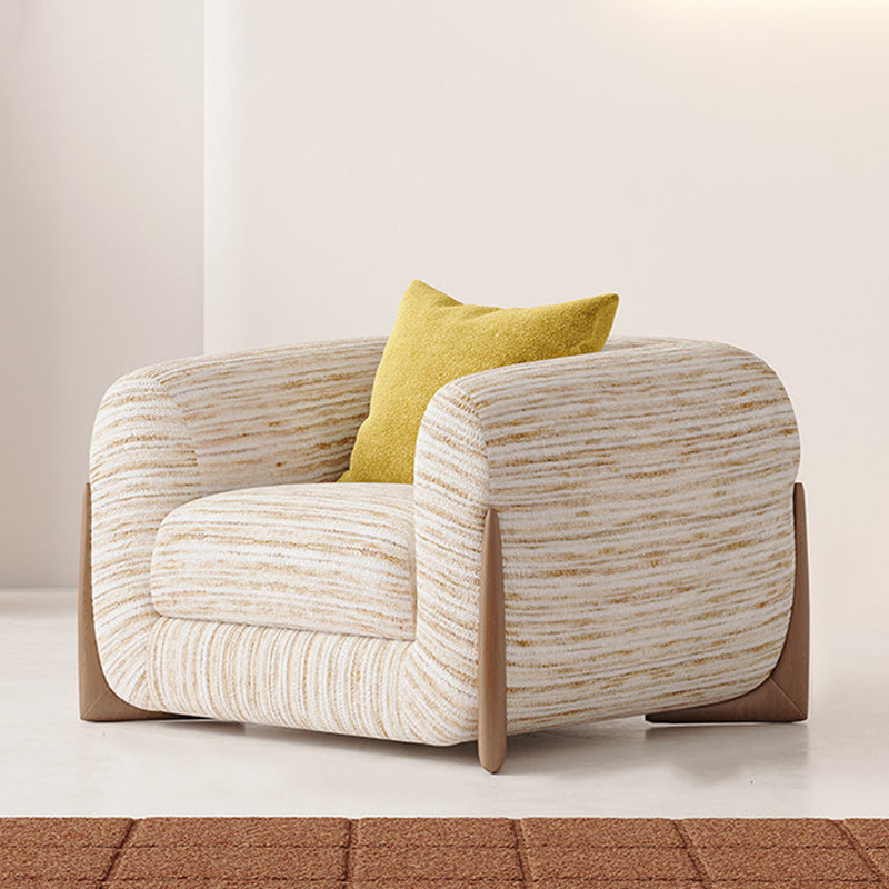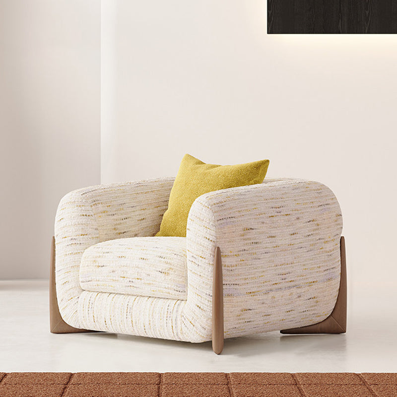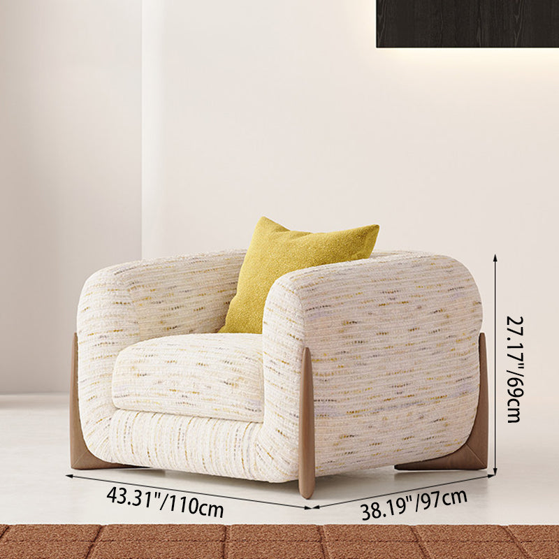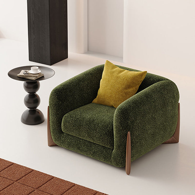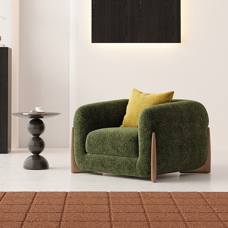 Contemporary Nordic Rectangular Lambswool Chenille Fabric Solid Wood Accent Chair Backrest Armrest For Living Room