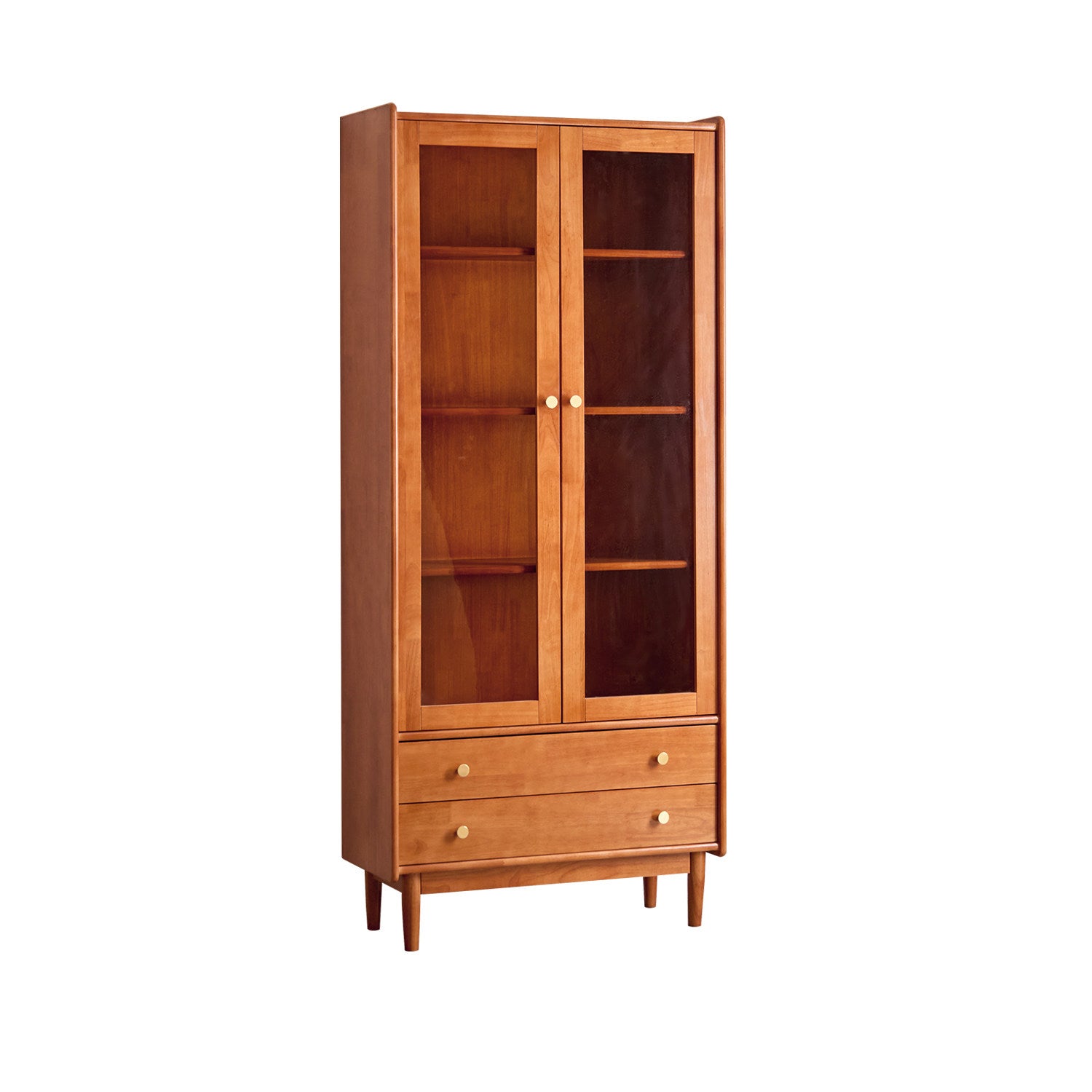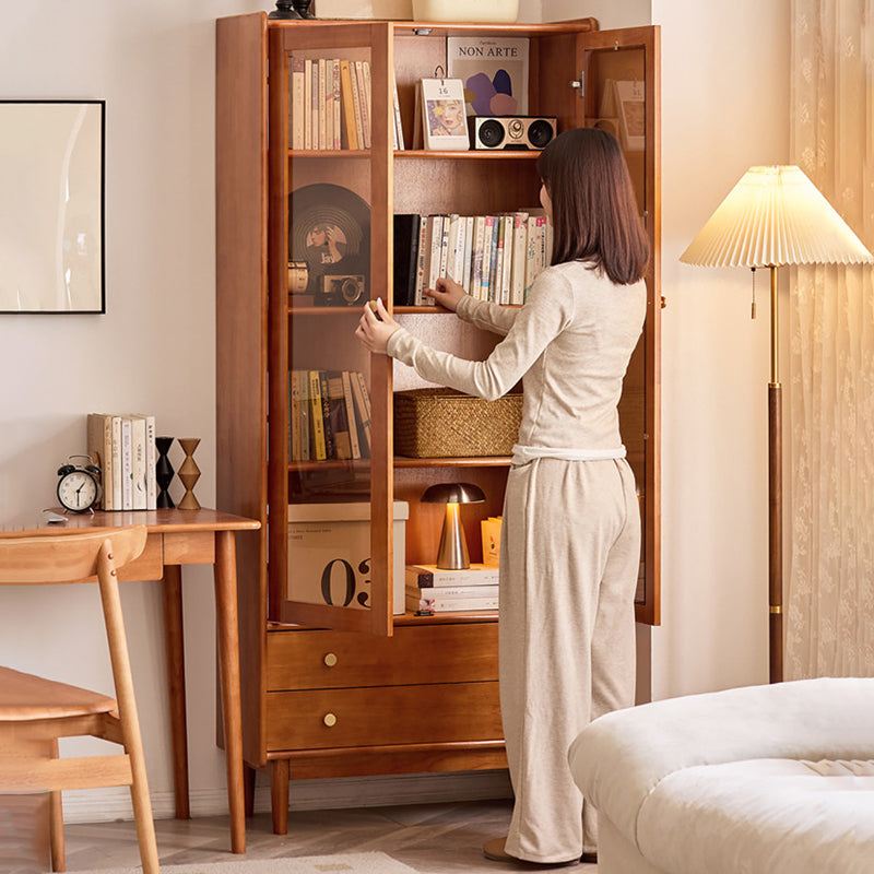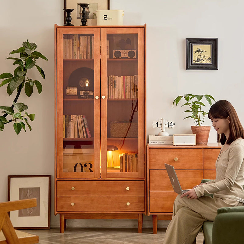 Expertly crafted from solid rubberwood and pine, this Scandinavian-inspired cabinet merges playful design with mid-century modern sophistication. Its unique robot-style silhouette houses a versatile arrangement of two drawers, one cabinet, and four spacious shelves, providing ample room for curated displays and concealed storage. Finished in warm cherry or deep walnut, the piece features rounded safety edges and a robust load-bearing structure, making it a durable and stylish cornerstone for any contemporary living space.