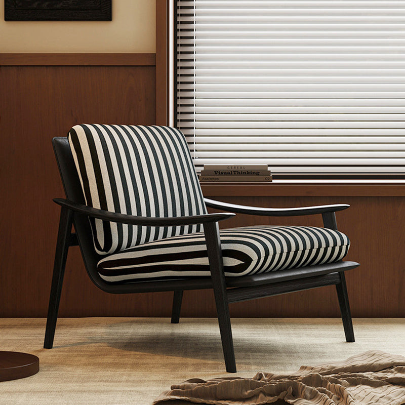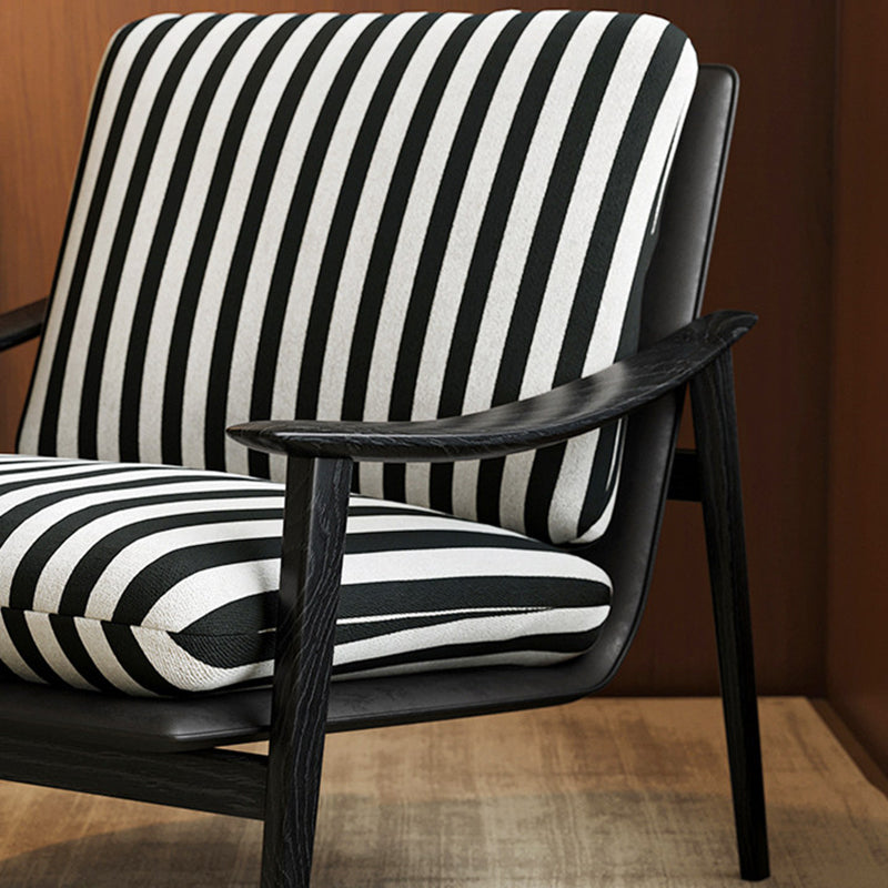 Embodying a sleek minimalist aesthetic, this jacquard armchair serves as a striking statement piece for any modern interior. It features a supportive backrest and integrated armrests, meticulously upholstered in a bold black-and-white striped fabric that offers both visual depth and a refined texture. Built upon a premium solid ash wood frame, the chair is cushioned with high-resilience foam to provide superior everyday comfort and lasting support.