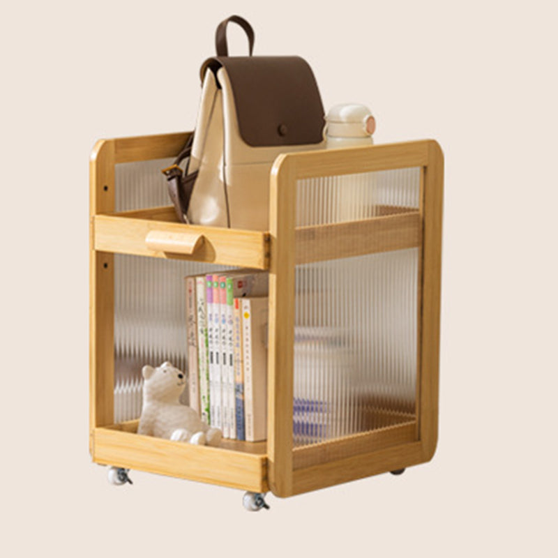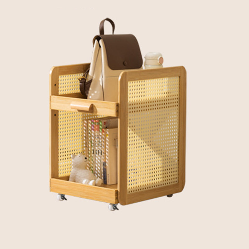Modern Minimalist Square Rectangular Acrylic Plastic Rattan Nan Bamboo Weaving Movable End Table 2-Tier For Living Room
