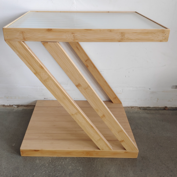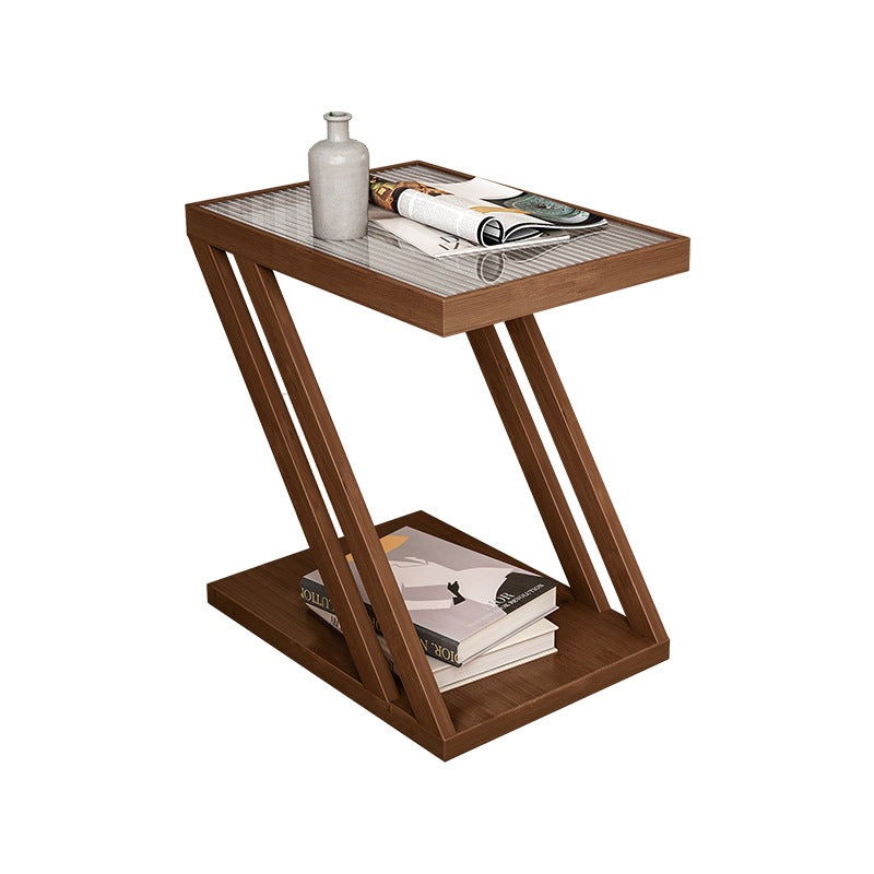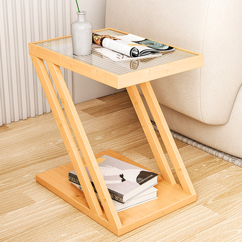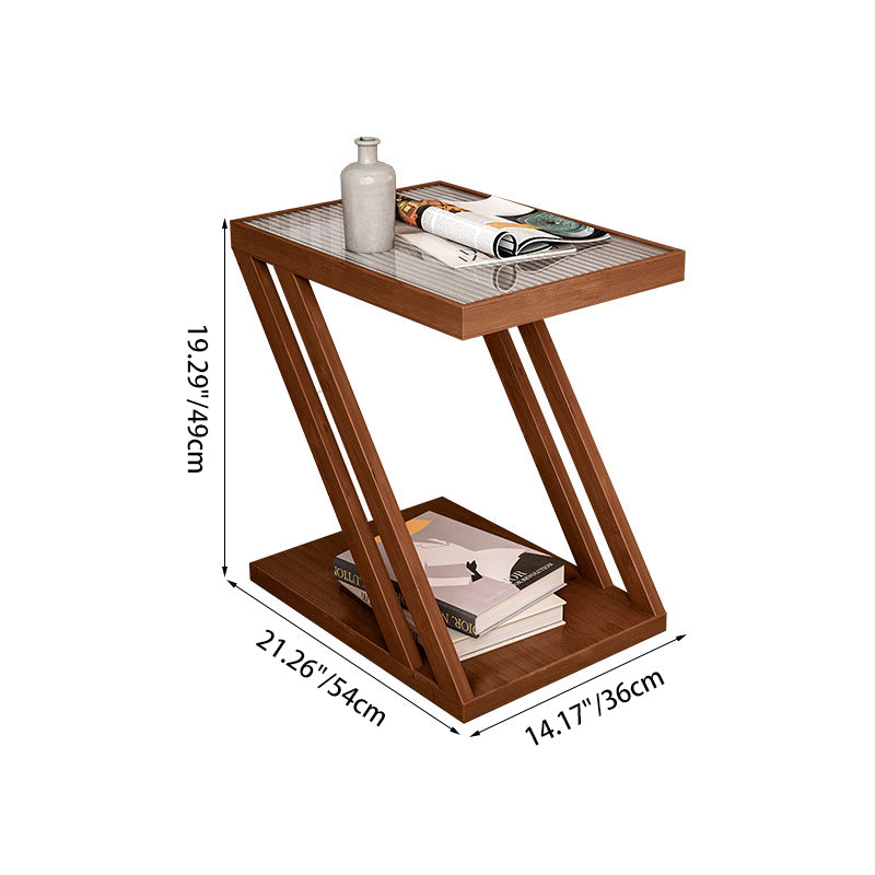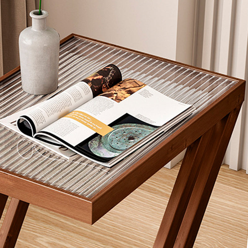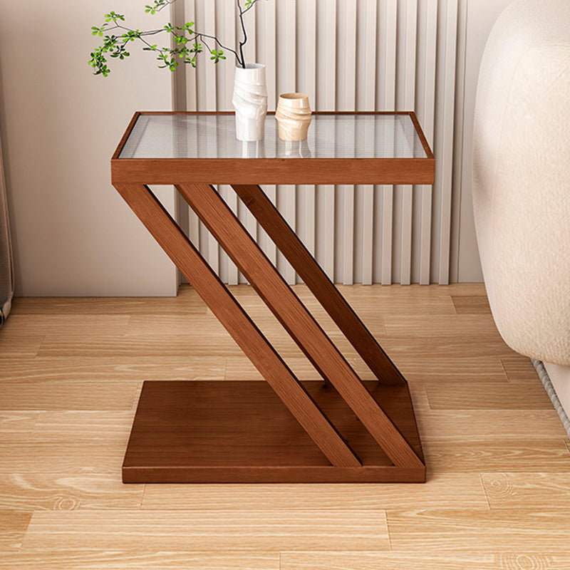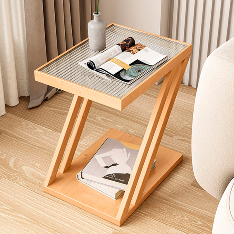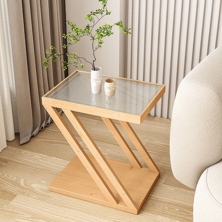 This 2-tier Traditional Japanese side table combines glass and bamboo rattan in natural wood and tea tones, featuring a misty ripple glass texture and smooth, refined materials. Its sturdy thickened legs and square form provide reliable support, making it an elegant and functional accent piece for any living room.