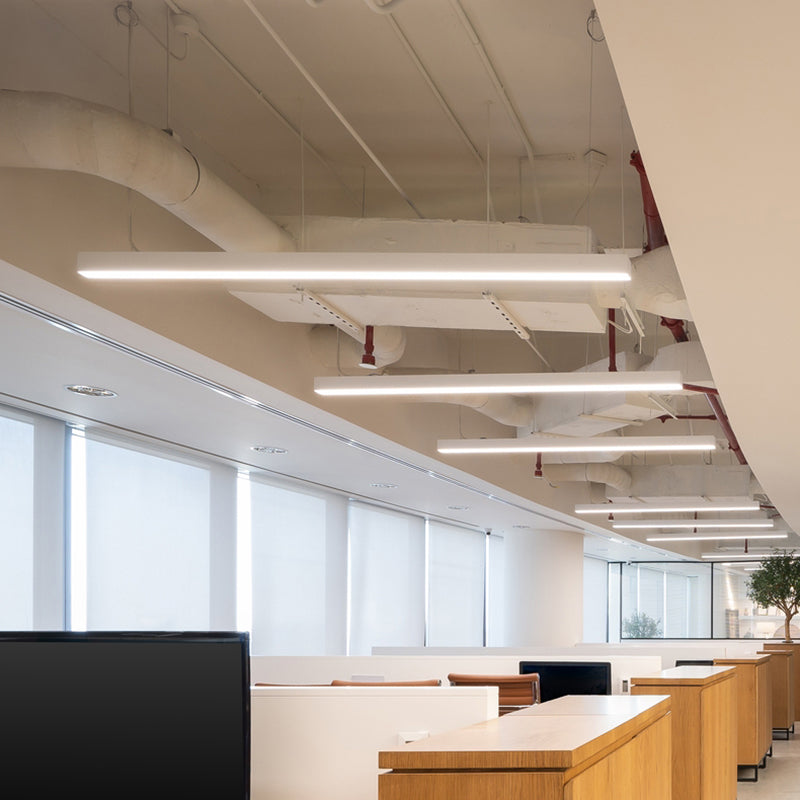 Illuminate your space with this industrial-style LED linear pendant light, designed with a sleek rectangular aluminum body and a high-transmittance PMMA diffuser for smooth, glare-free lighting. With its 90° wide beam angle and high Ra (≥90), this fixture delivers true-to-life colors and uniform brightness, making it perfect for both professional and home environments.