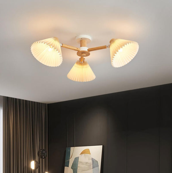 Plafonnier semi-encastré à 3/6/8 lumières avec abat-jour plissé en bois nordique