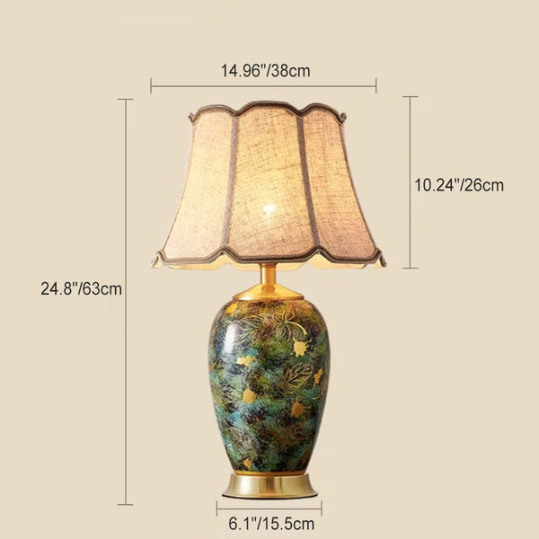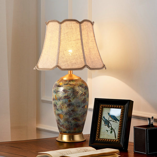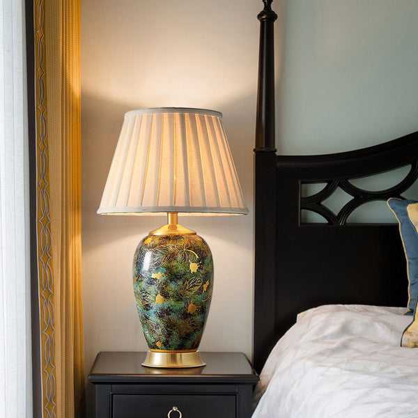 Lampe de Table Moderne en Céramique avec Abat-Jour Plissé Octogonal en Tissu de Luxe pour Chambre à Coucher, 1 Lumière