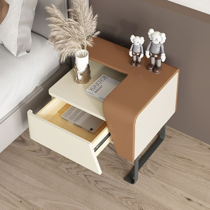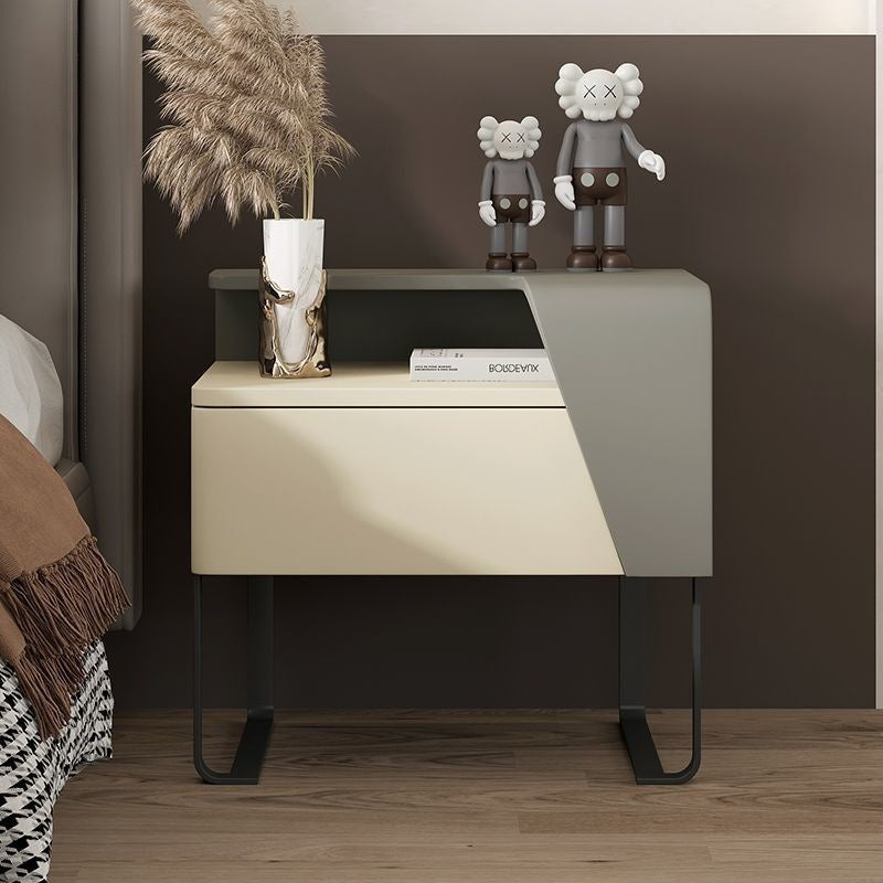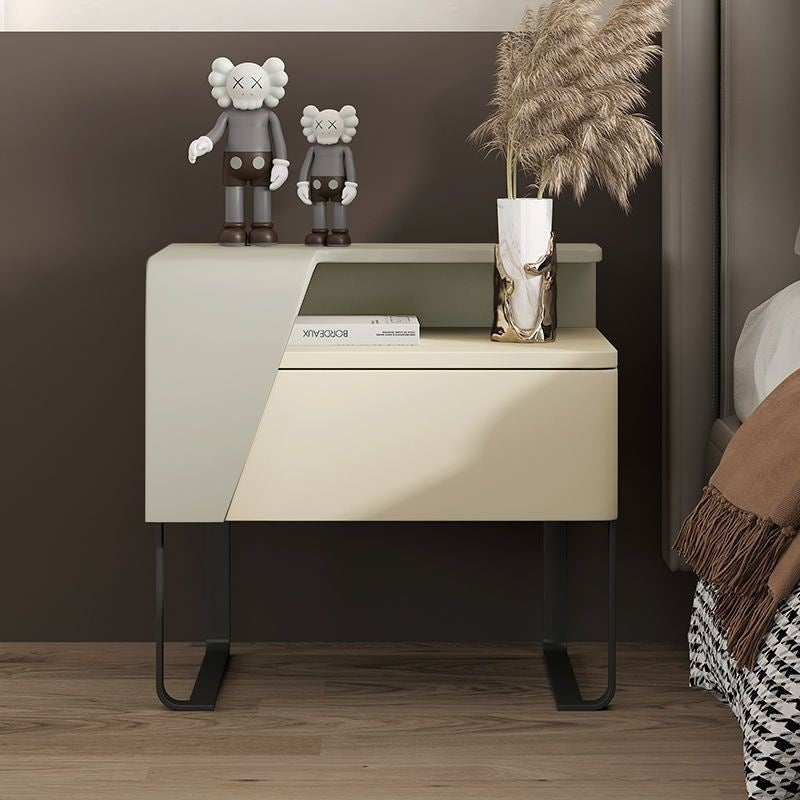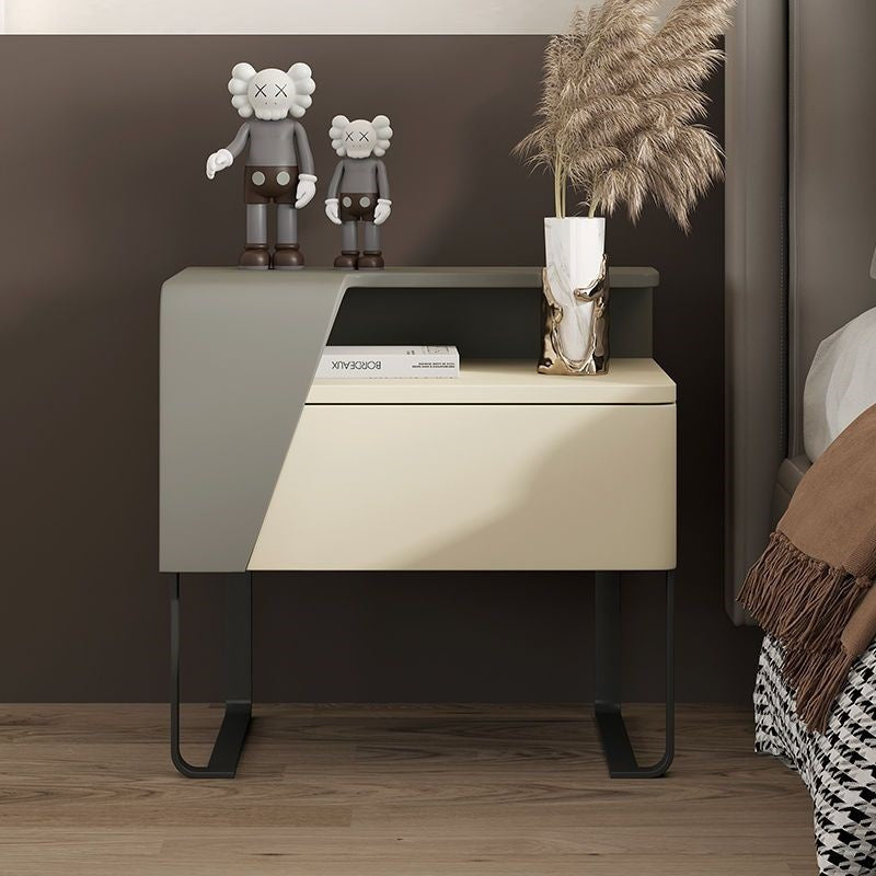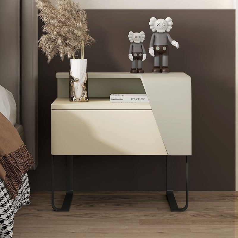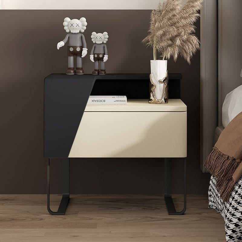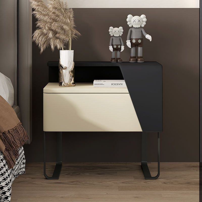 Contemporary Nordic Rectangular Carbon Steel Pine Wood Nightstand 1-Drawer For Bedroom