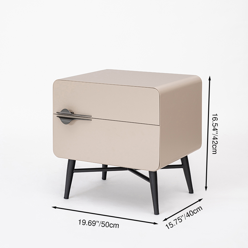Soft-Hued Nordic Nightstand - Baking Paint Finish Integrated Metal Handle Bedside Table 2-Drawer For Bedroom