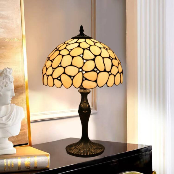 Lampe de Table à 1 Lumière en Verre Coloré en Dôme Fleur de Galets Tiffany Européen