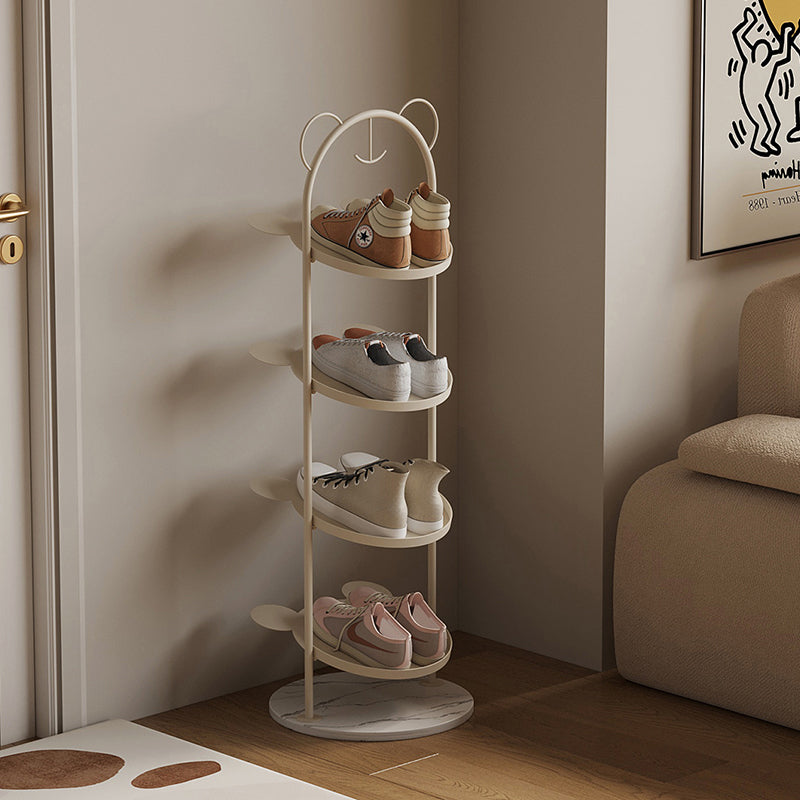 Perfect for renters and small spaces, this contemporary creative cartoon bear-shaped shoe rack with 5 trays keeps your entryway organized without clutter. Made of thickened rust-resistant reinforced iron and a stable heavy marble base, it comes in black and milk tea color, ideal for tidying shoes in your living room, entryway or hallway.