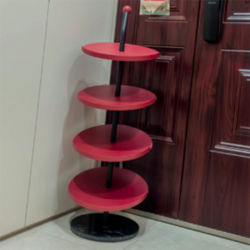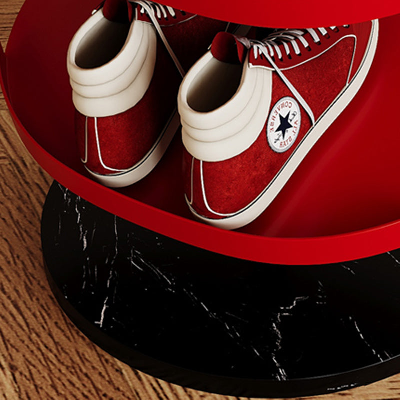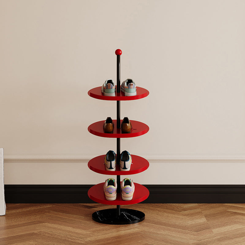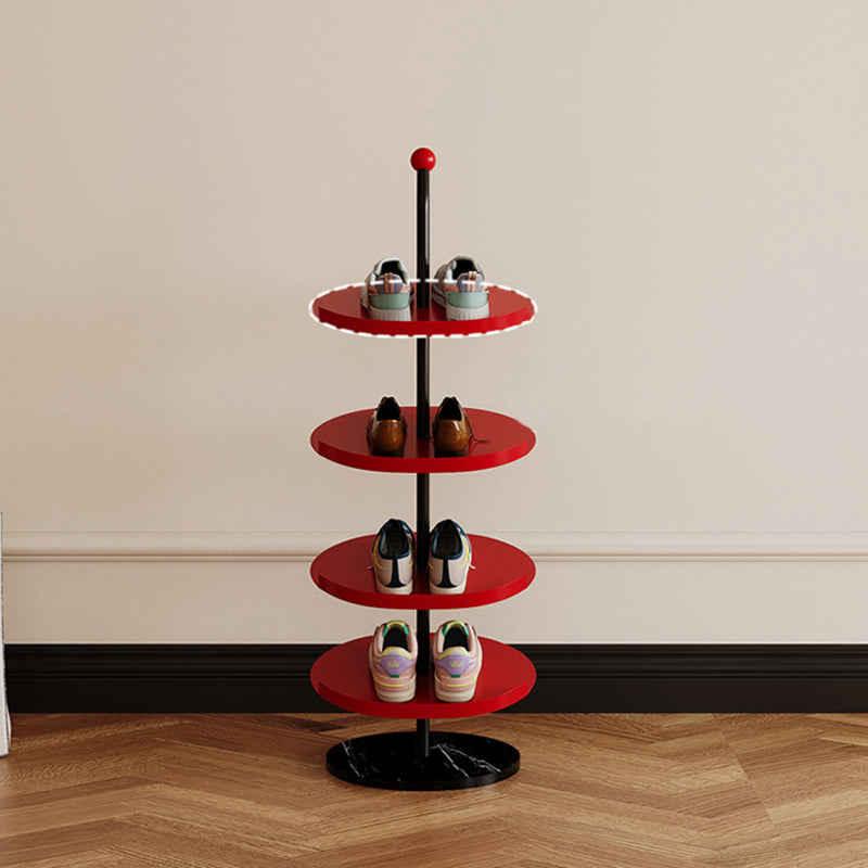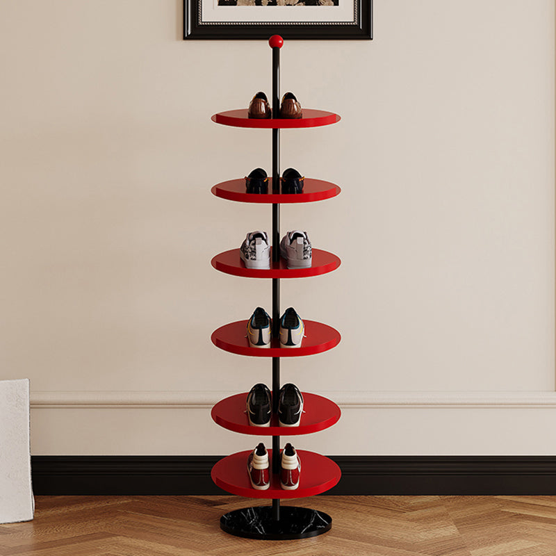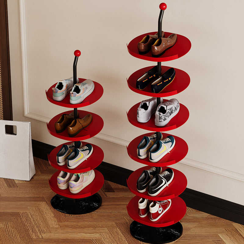 Designed for everyday use, this Nordic round shoe rack features reinforced carbon steel trays and a thick marble base for strong, wobble-free support. The 4 or 6 tier layout maximizes vertical storage while the semi-enclosed anti-slip edge keeps shoes securely in place. Finished with a rust- and scratch-resistant coating, it's an ideal space-saving solution for entryways, hallways, and living rooms. Available in red and light yellow.