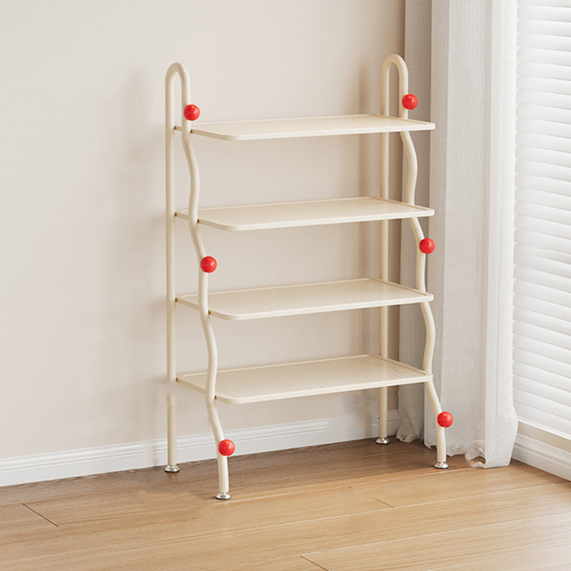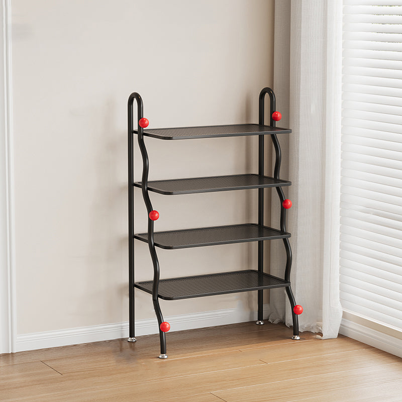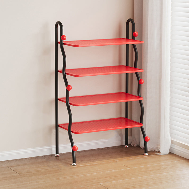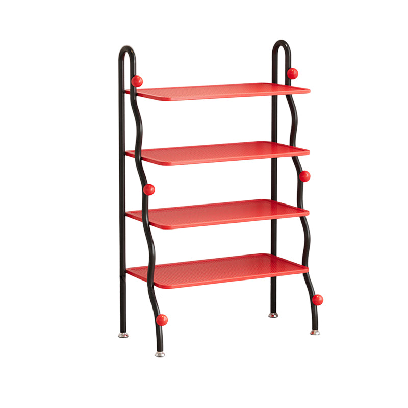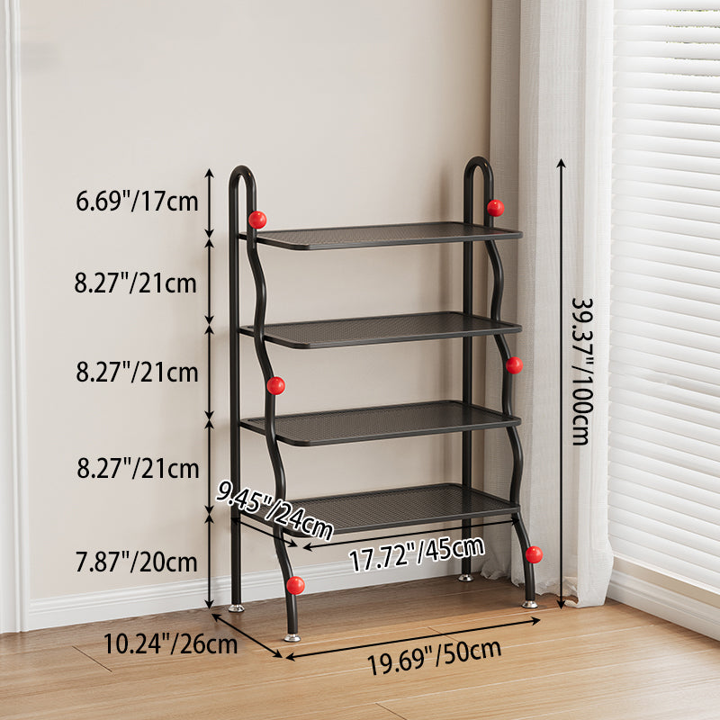 Organize your entryway with this modern minimalist iron shoe rack, featuring a wavy rectangular design and 4 spacious tiers. Made from durable rust-resistant iron, it's strong enough to hold multiple shoes, while the ventilated shelves keep footwear fresh. Available in green, white, red, and black, it's perfect for hallways, entryways, and small spaces.