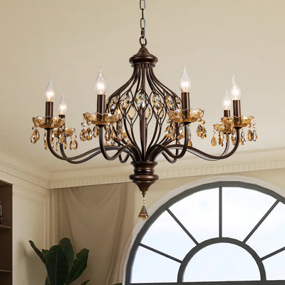 Lustres colonnes rétro ajourés à 3 lumières en fer forgé