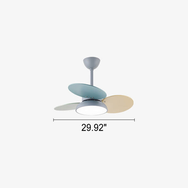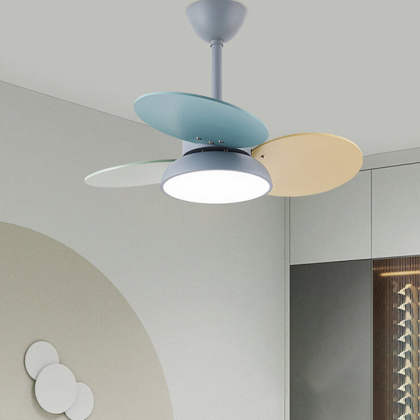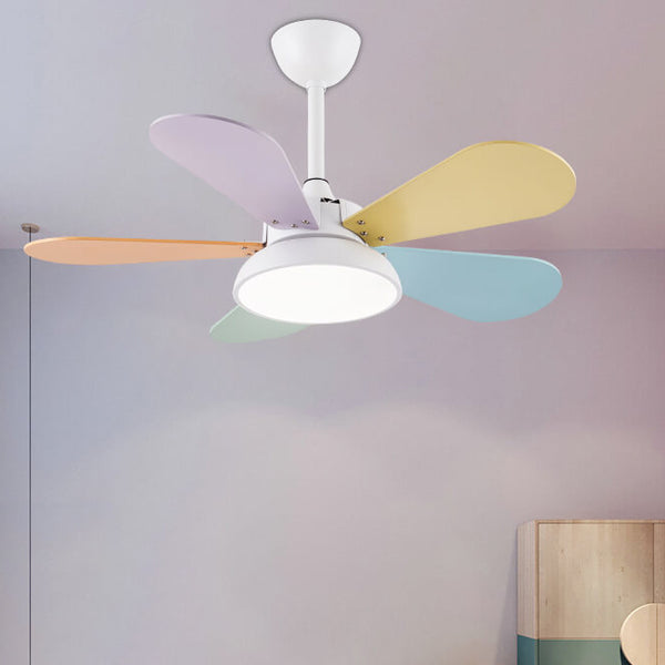 Ventilateur de plafond avec lumière et tiges colorées simples et rondes pour enfants