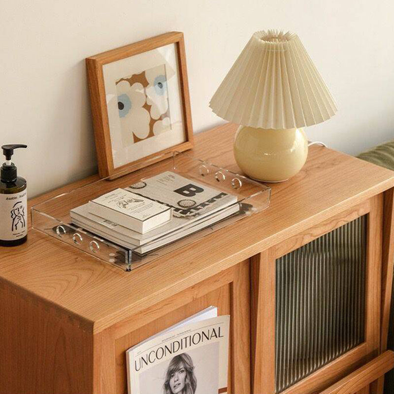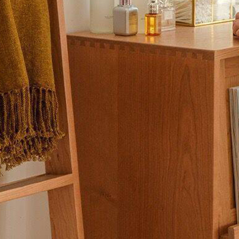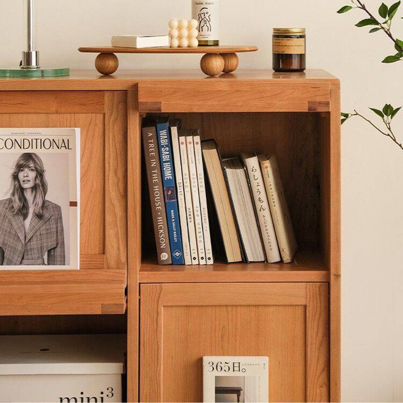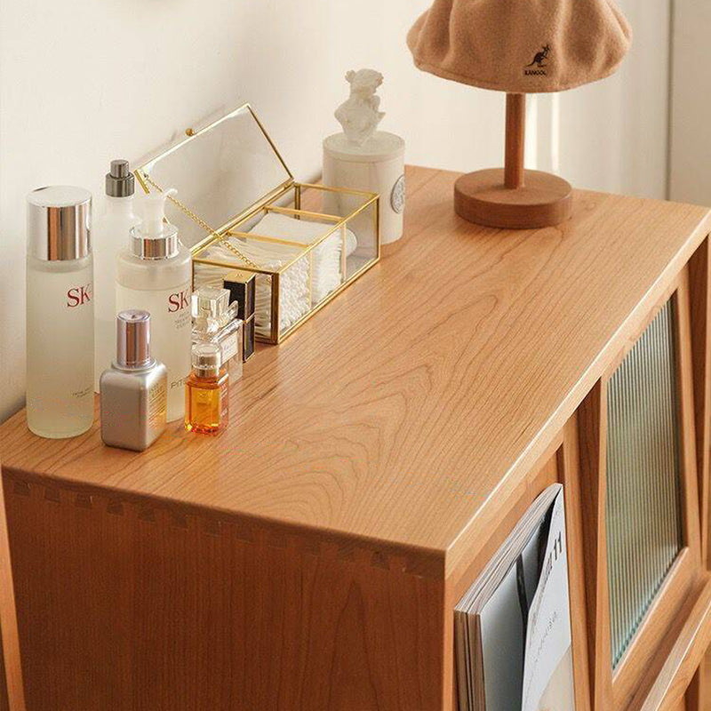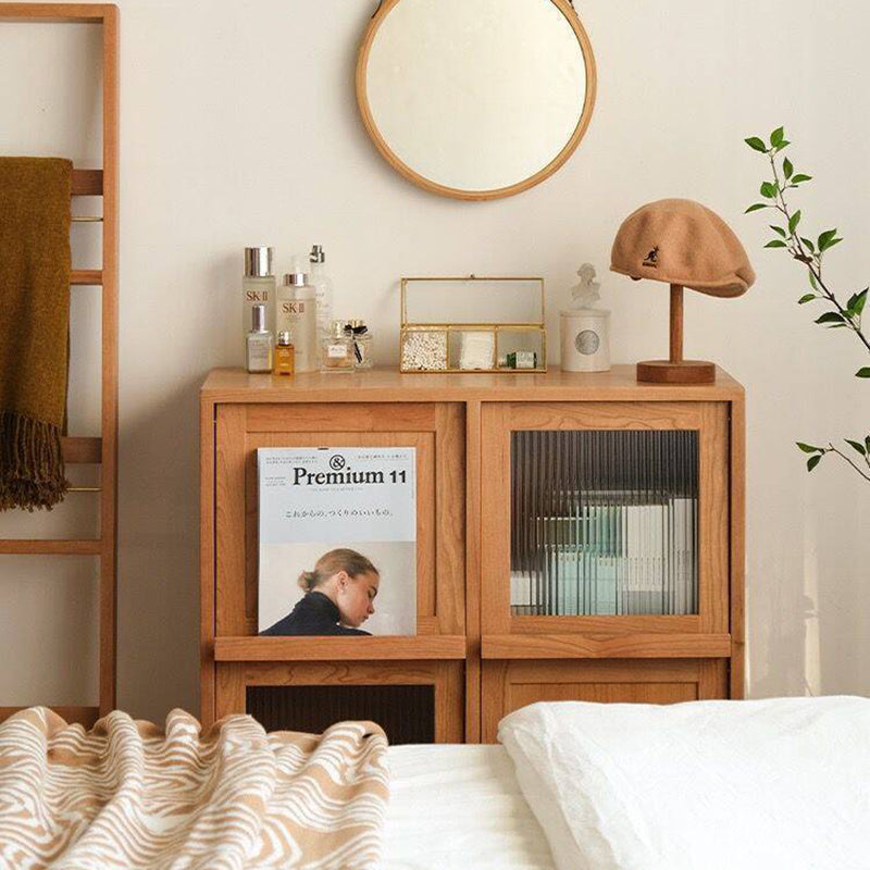 This Contemporary Nordic storage cabinet blends solid wood and glass in a sleek rectangular shape, featuring 4 cabinets with flip-top doors for neat, independent storage—ideal for living rooms or bedrooms. Finished in a warm natural wood tone, it keeps your items organized while adding a modern Nordic vibe to your space.