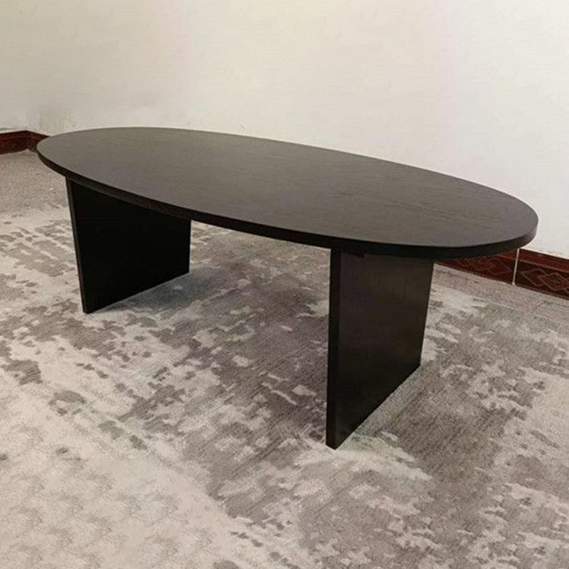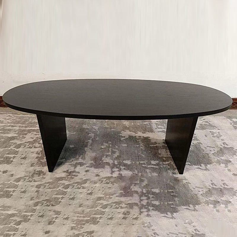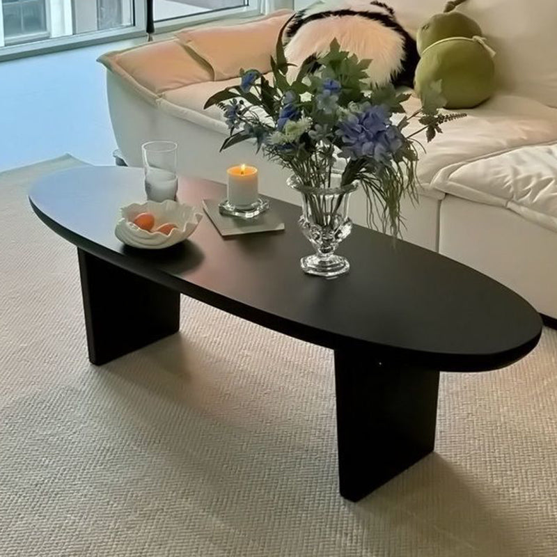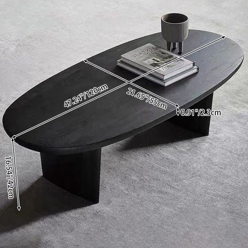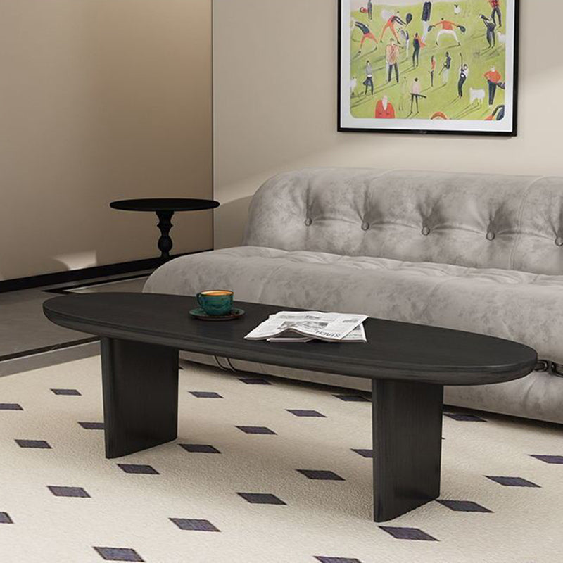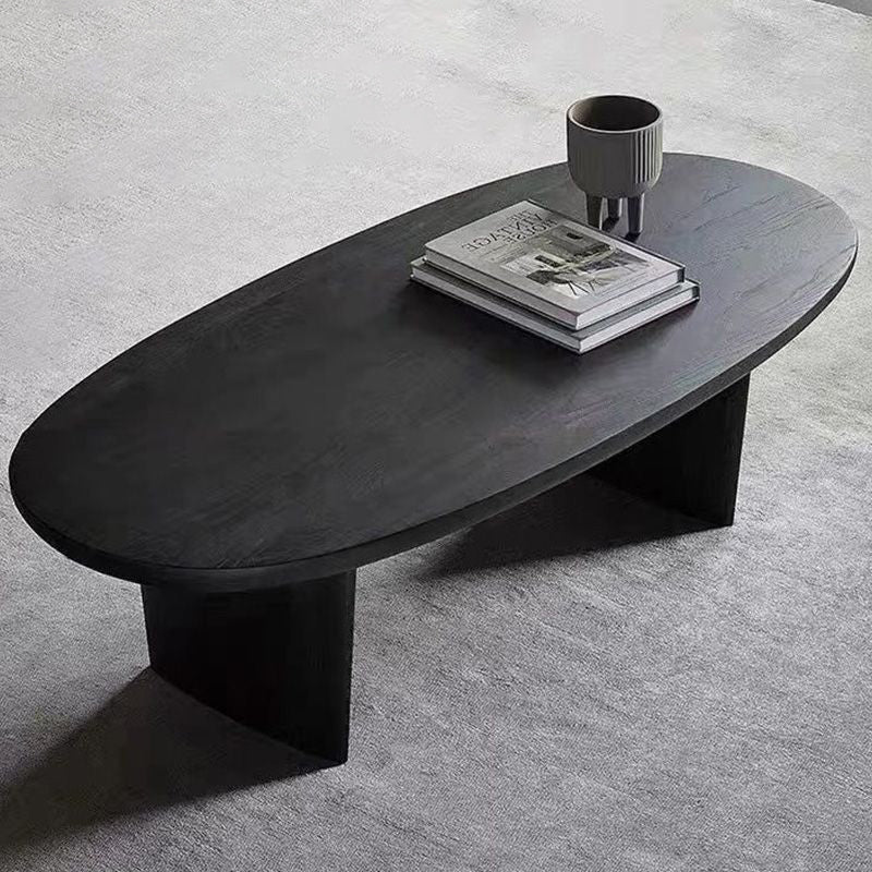 Contemporary Scandinavian Solid Wood Long Oval Coffee Table 1-Tier For Living Room