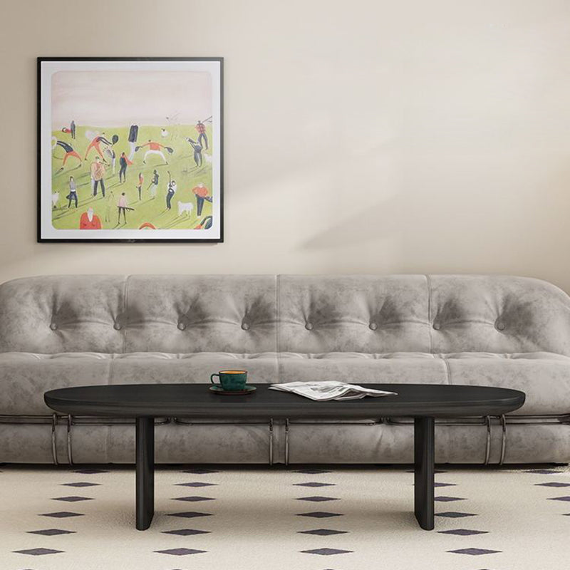 This contemporary Scandinavian coffee table is crafted from solid wood in a refined black-gray finish, featuring a clean long oval silhouette that suits small living rooms, designer homes, and minimalist interiors. The stable, reinforced structure ensures long-lasting durability and resistance to deformation, offering a timeless and practical centerpiece for everyday living.