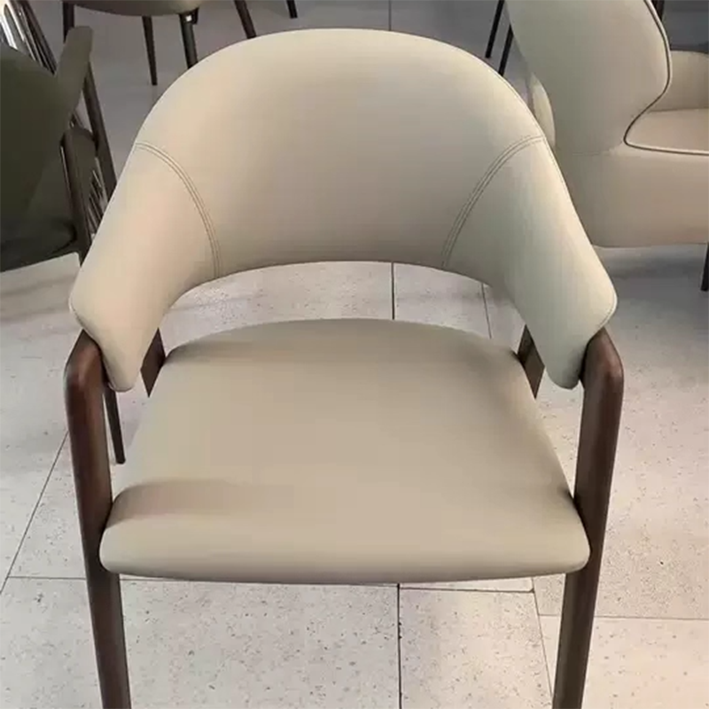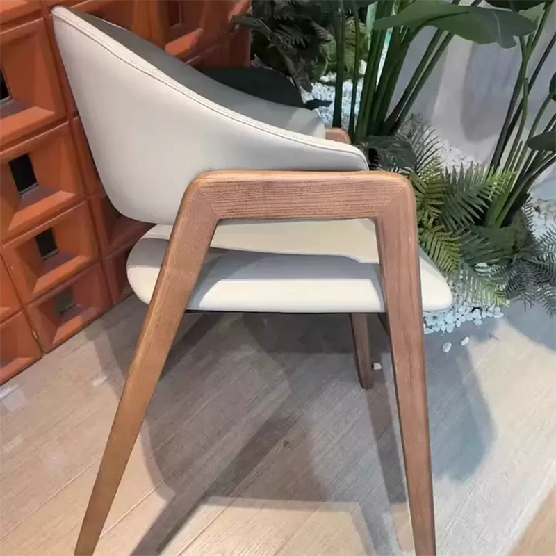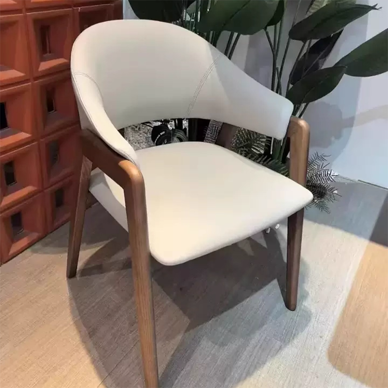 Experience the luxury of "soft comfort" without the high-maintenance upkeep. The seat is upholstered in high-quality faux leather—offering a buttery-soft texture that is both spill-resistant and durable—and padded with high-resilience foam to ensure it retains its shape over years of use. Supported by stable solid wood legs, this heavy-duty chair is built for versatility, transitioning seamlessly from upscale dining rooms and boutique hotels to casual meeting spaces and home offices. Available in neutral Khaki or classic Black, it is optimized for North American consumers searching for solid ash wood dining chairs, minimalist armchairs with leather, Nordic style guest seating, and luxury commercial-grade chairs.