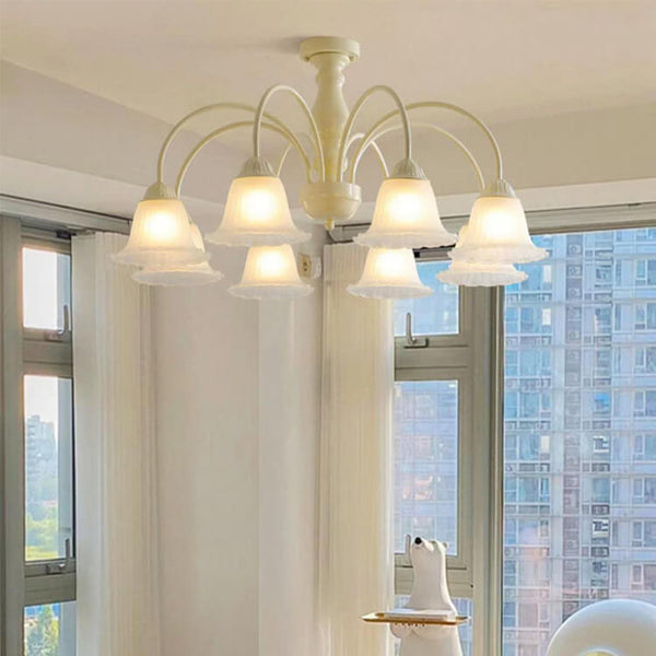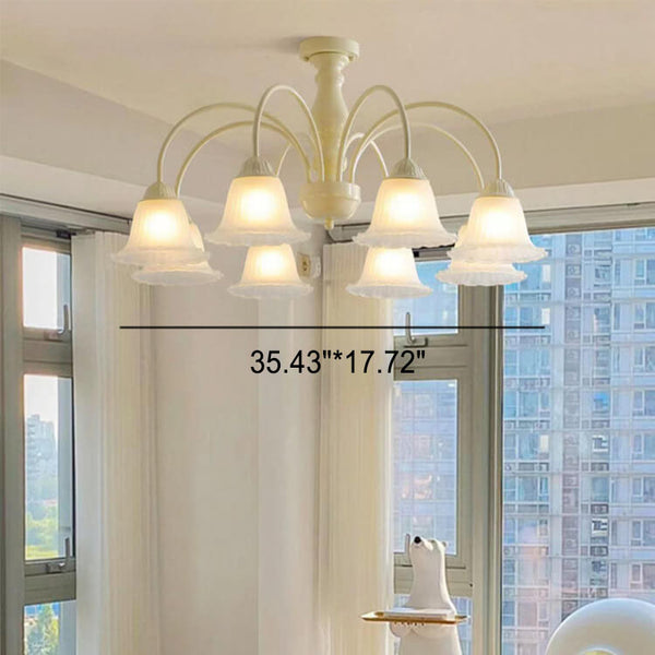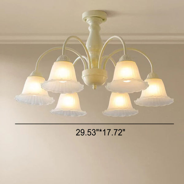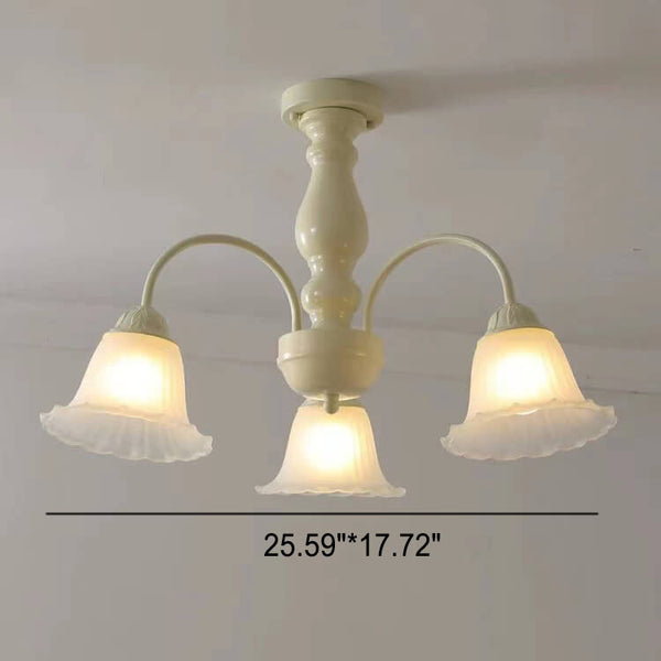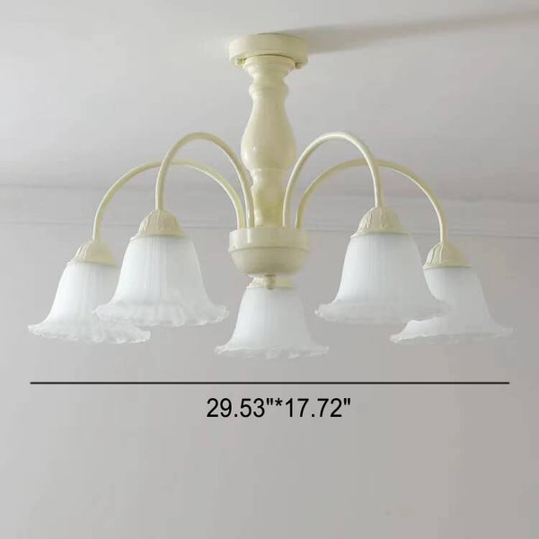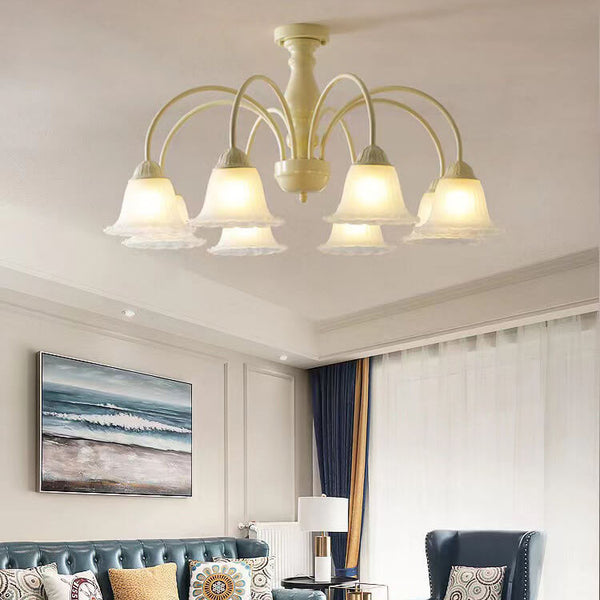 Abat-jour en verre crème français pour fleur 3/5/6/8 lumières semi-encastrées pour plafond