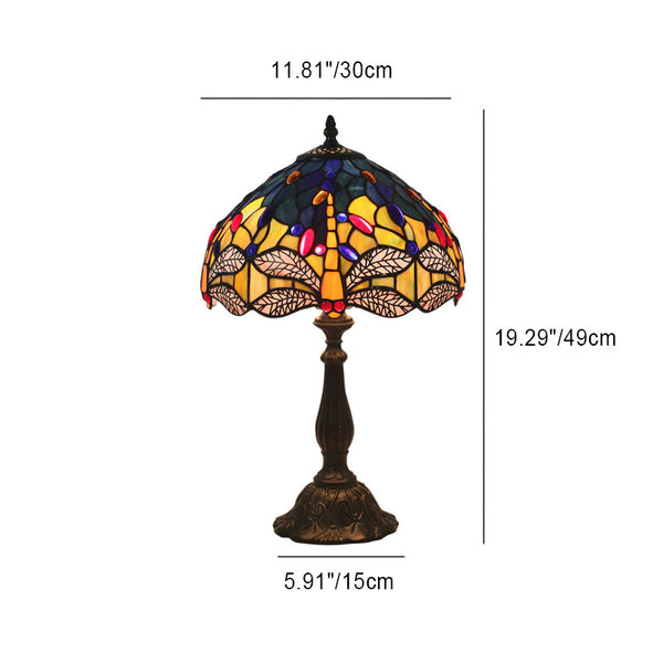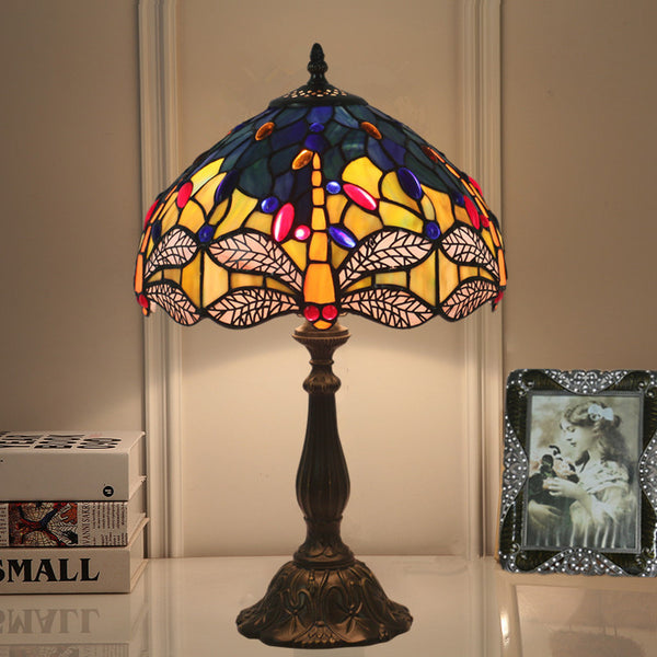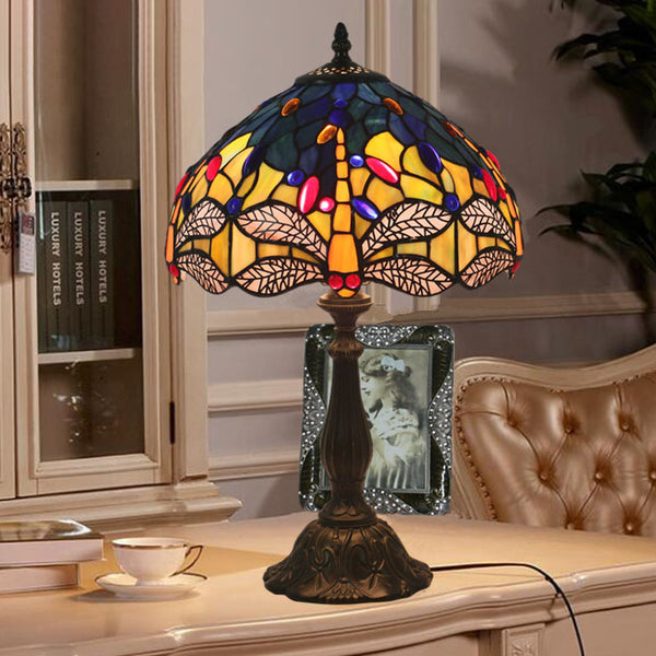 Lampe de table 1 lumière avec vitrail Tiffany traditionnel libellule pour salon