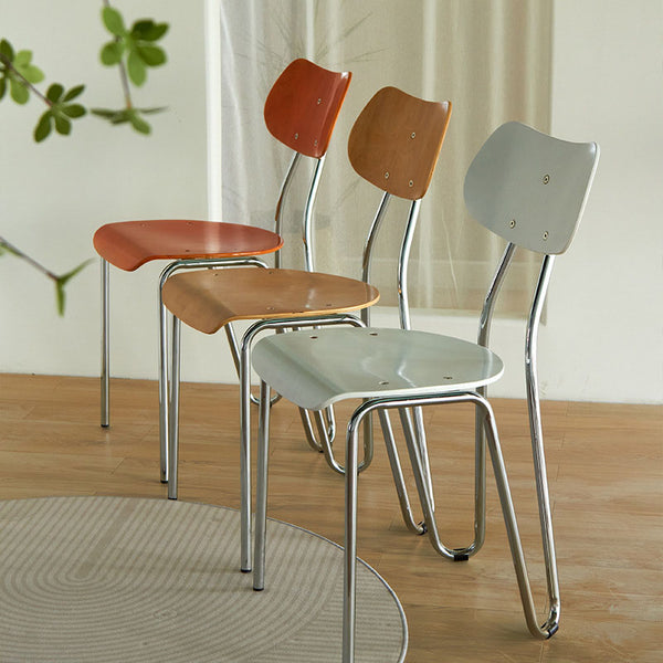 Chaise moderne minimaliste carrée en métal et bois avec quatre pieds et dossier pour salon