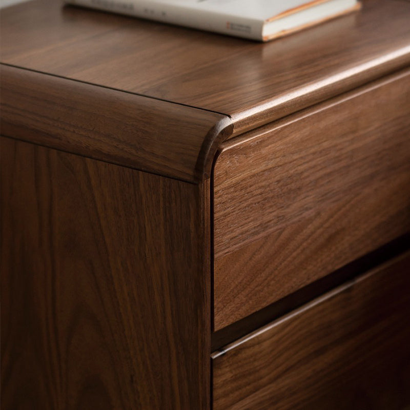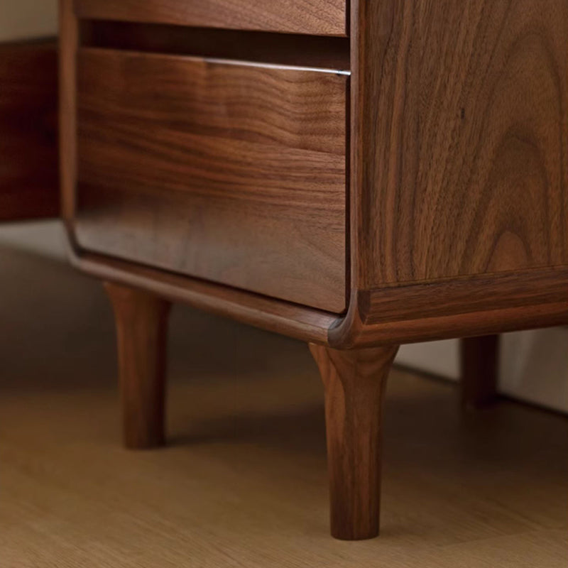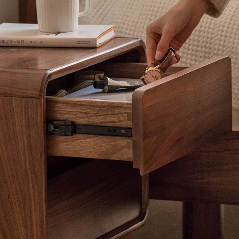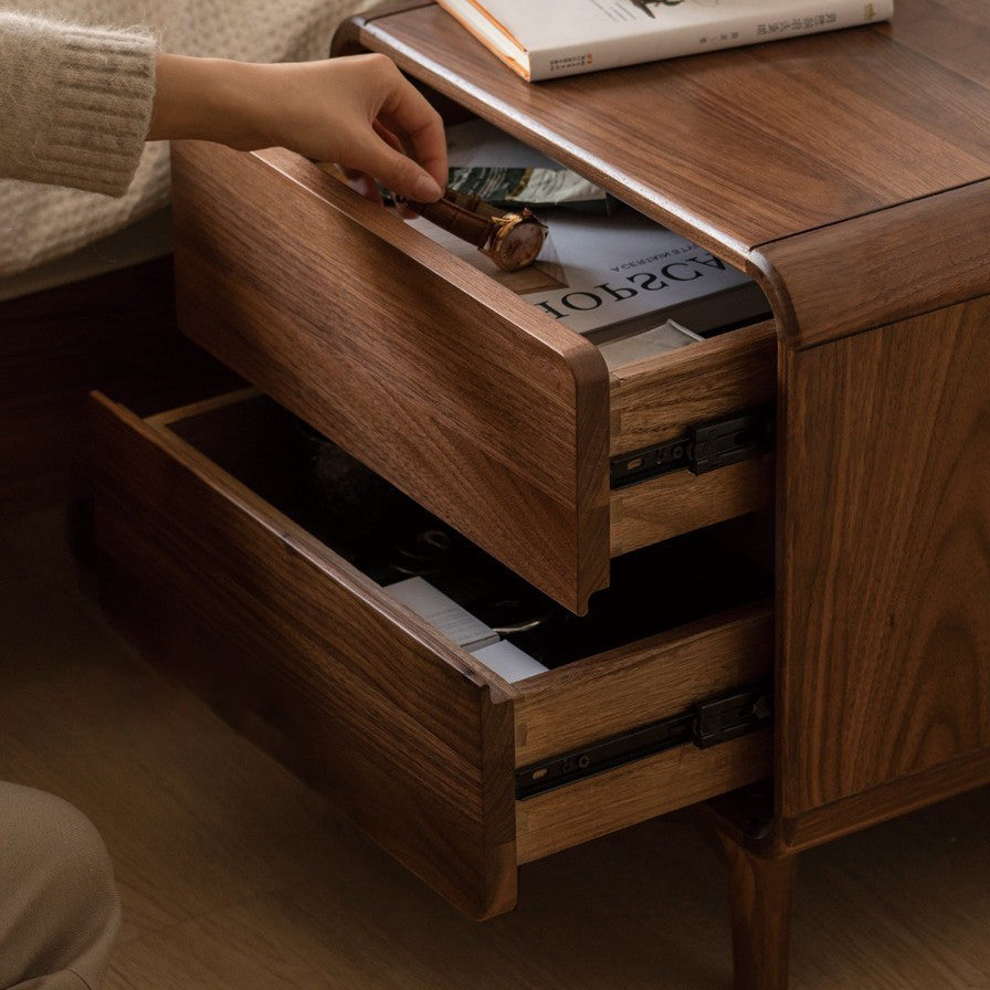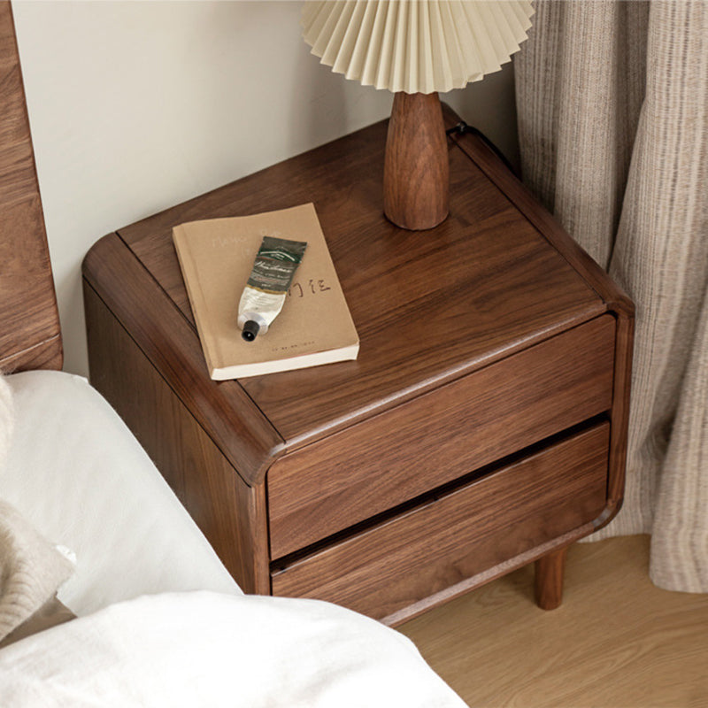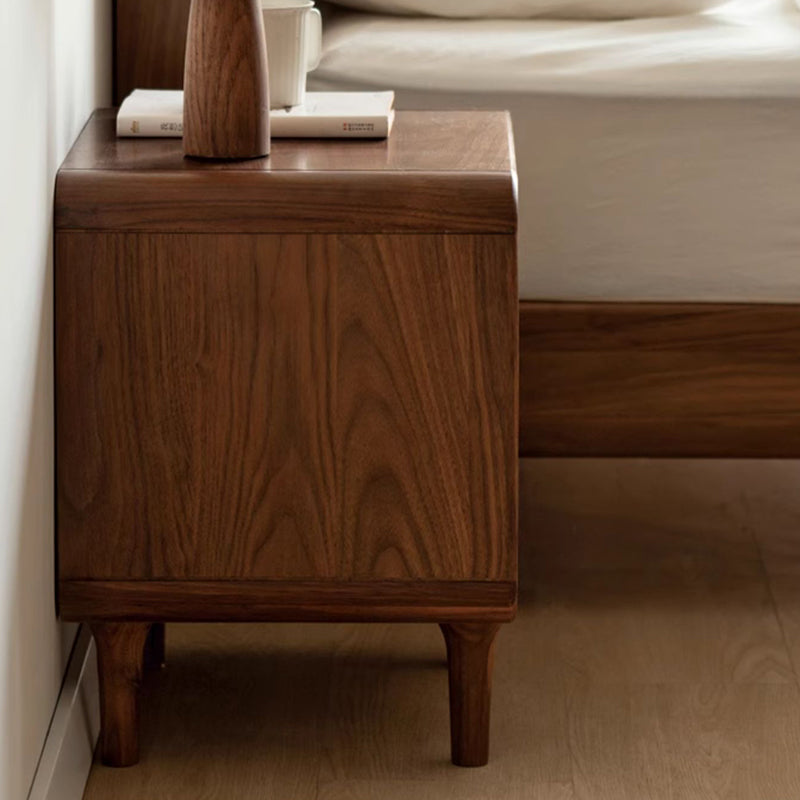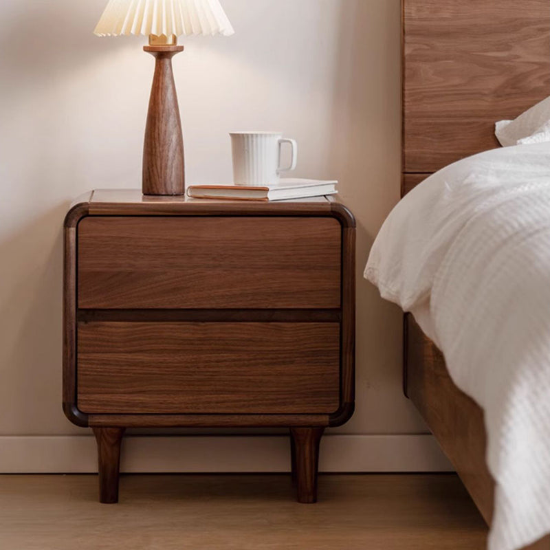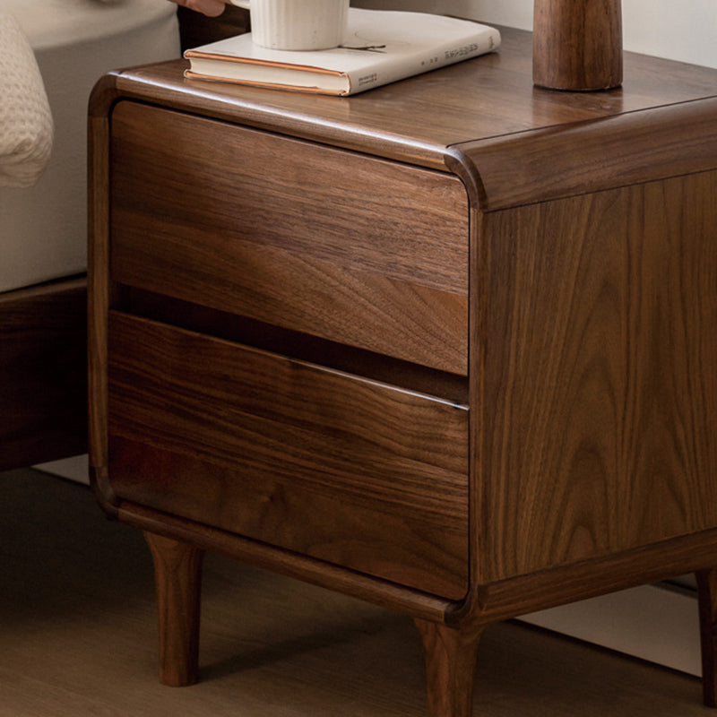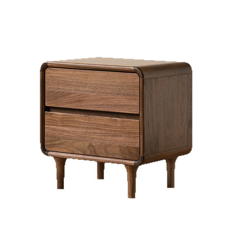 Table de chevet contemporain nordique rectangulaire à pieds hauts en bois de noyer noir et bois de paulownia avec 2 tiroirs pour chambre à coucher