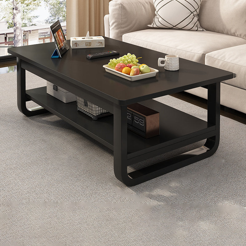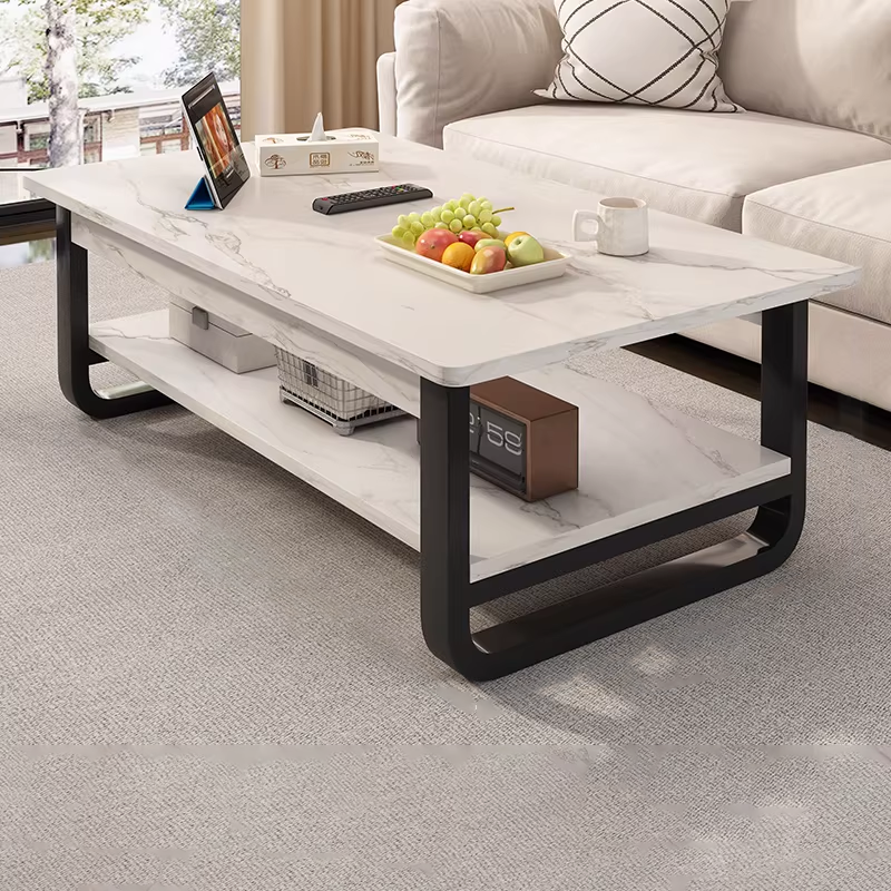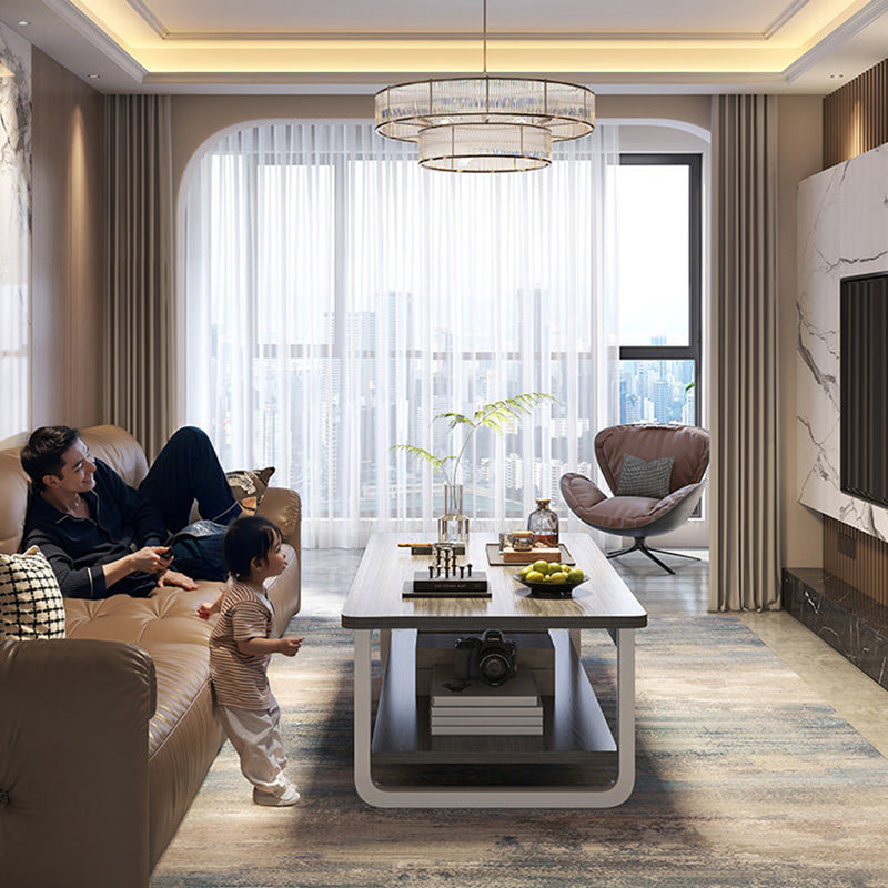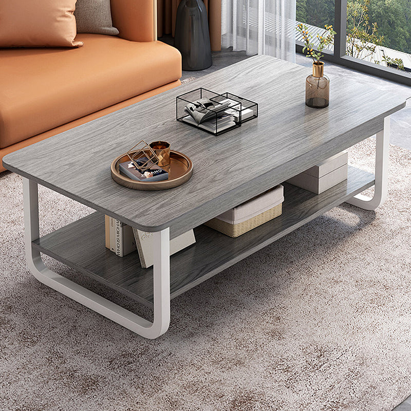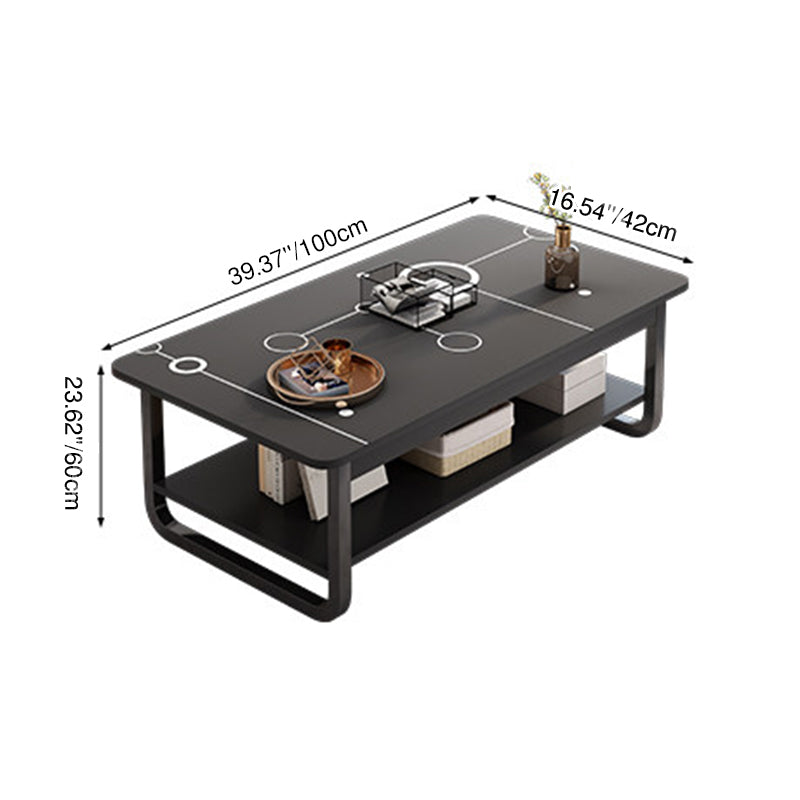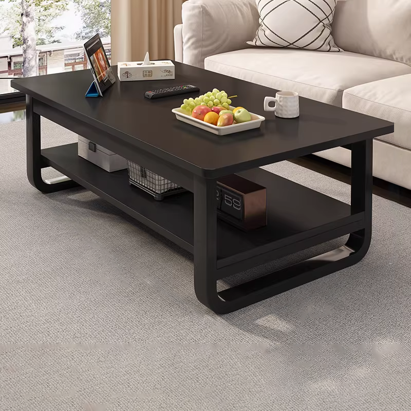Contemporary Industrial 2-Tier Rectangular Coffee Table comes in 6 versatile colors: Morandi Gray, Lotus White, Frost Moon Cool White, Smoked Black, Charcoal Black and North American Black Walnut. Made of durable MDF and supported by thickened steel pipes for stability, it’s ideal for small spaces and rental homes, offering practical storage in the living room.