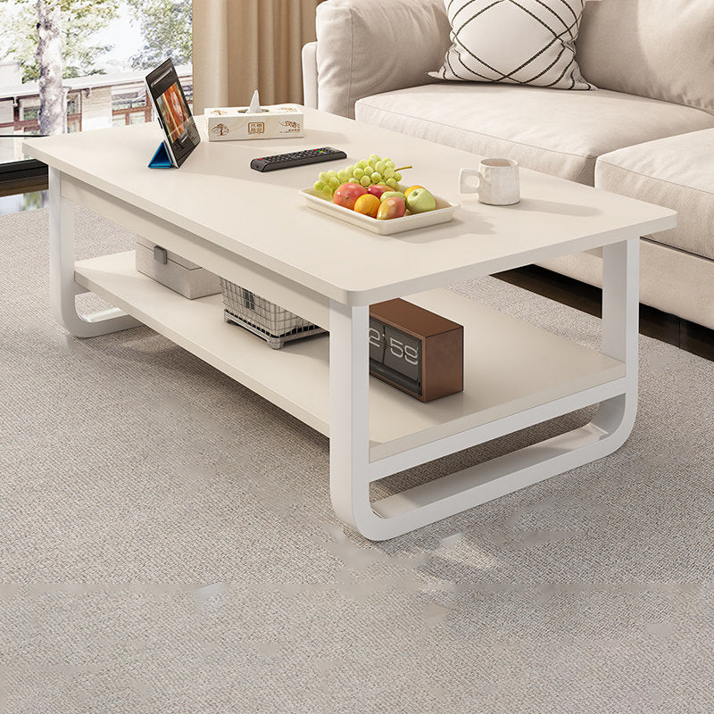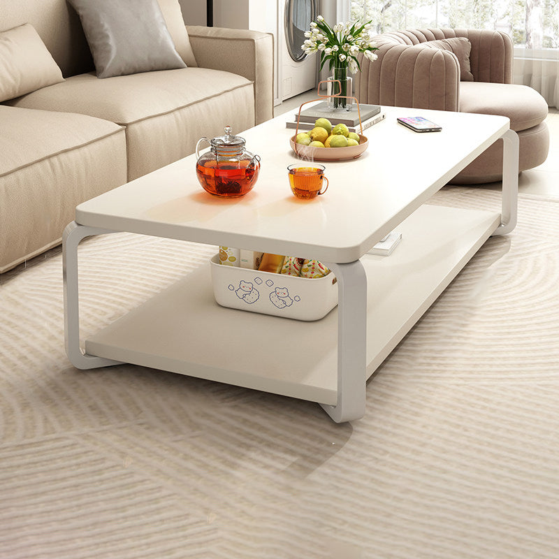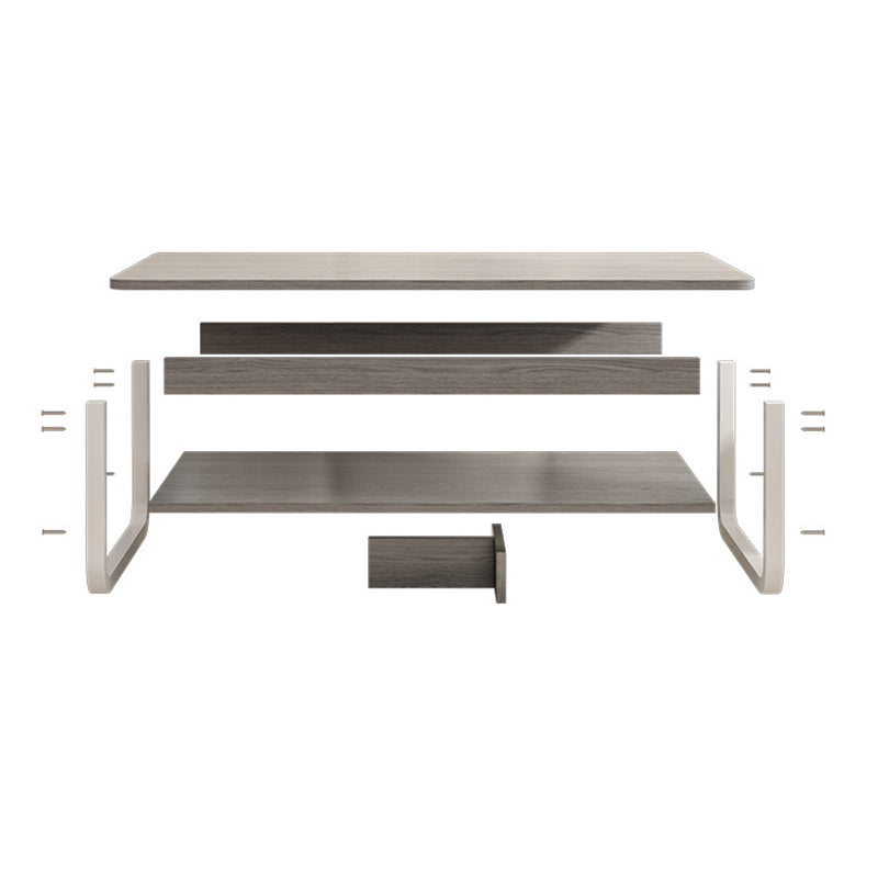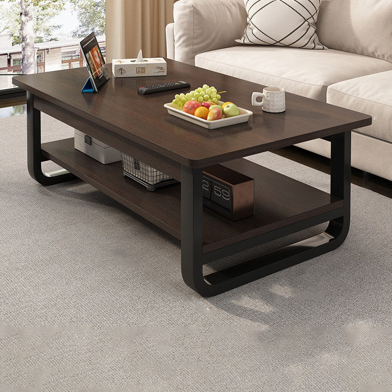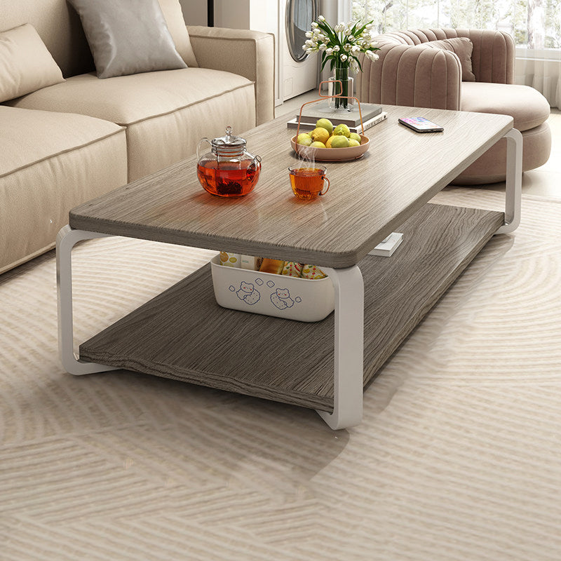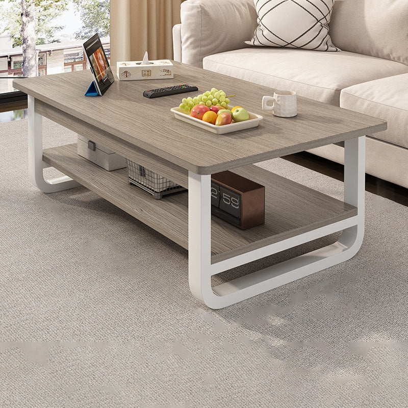 Contemporary Industrial 2-Tier Rectangular Coffee Table comes in 6 versatile colors: Morandi Gray, Lotus White, Frost Moon Cool White, Smoked Black, Charcoal Black and North American Black Walnut. Made of durable MDF and supported by thickened steel pipes for stability, it’s ideal for small spaces and rental homes, offering practical storage in the living room.