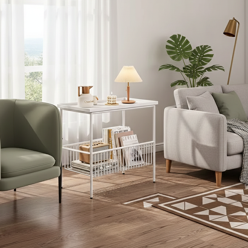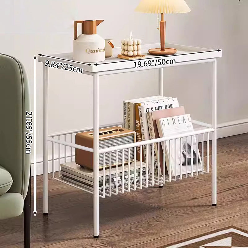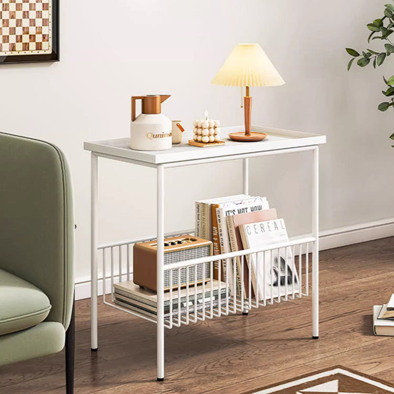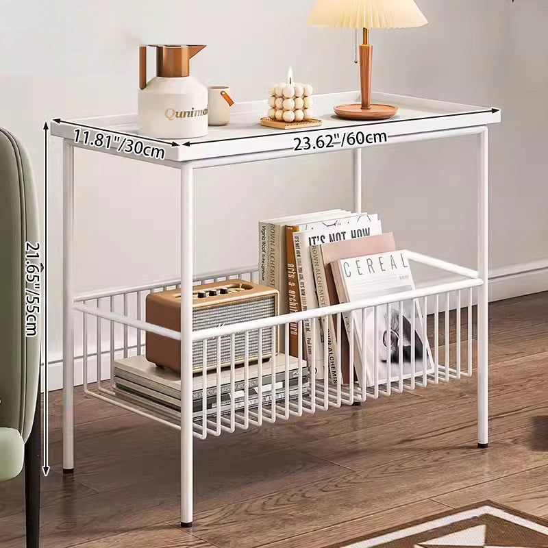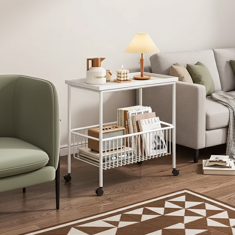 This modern minimalist iron coffee table showcases a sleek rectangular silhouette in clean white, delivering both style and function to any living room. Designed with 2-tier storage and elevated guardrails, it offers strong load-bearing support while keeping items secure. The smooth 360° rolling wheels add effortless mobility, making this versatile mobile metal coffee table a practical and contemporary storage solution for everyday use.