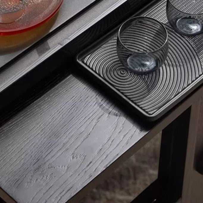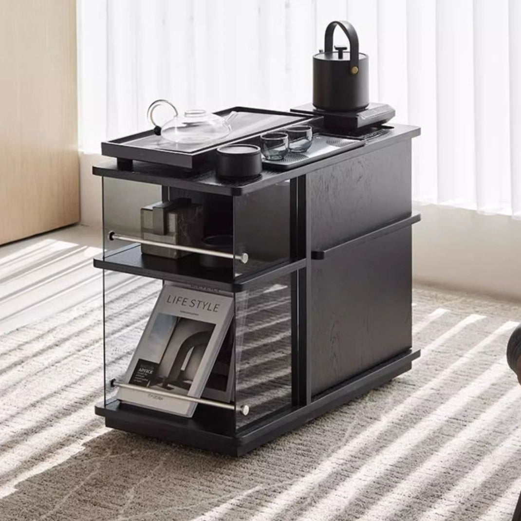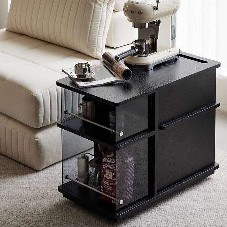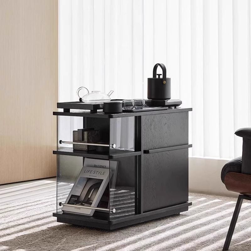 Modern Minimalist Rectangular Solid Wood Plywood Glass Stainless Steel Removable Partition Movable End Table 4-Cabinet For Living Room